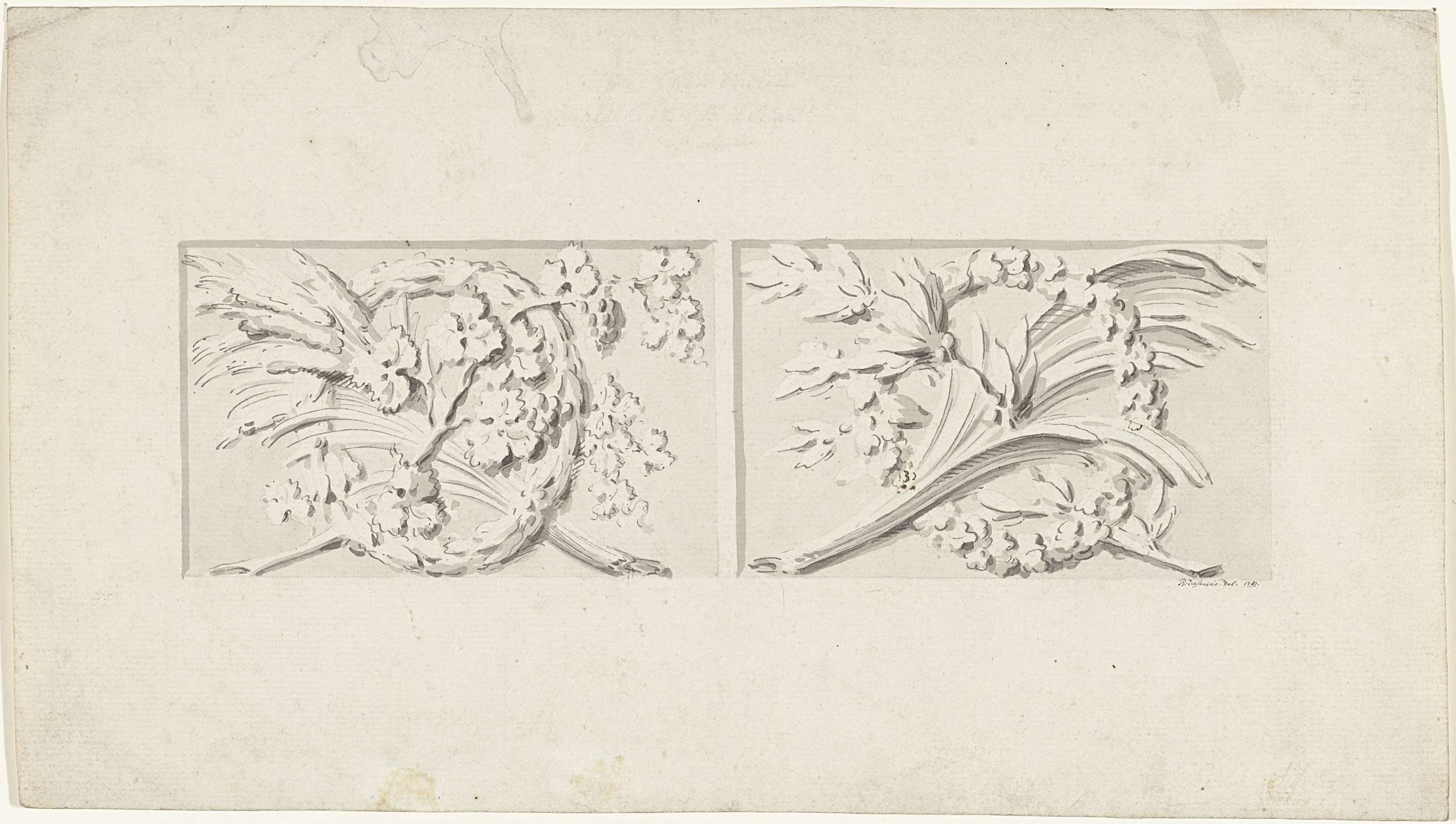 Twee ontwerpen voor lunetten, een met mercuriusstaf ...