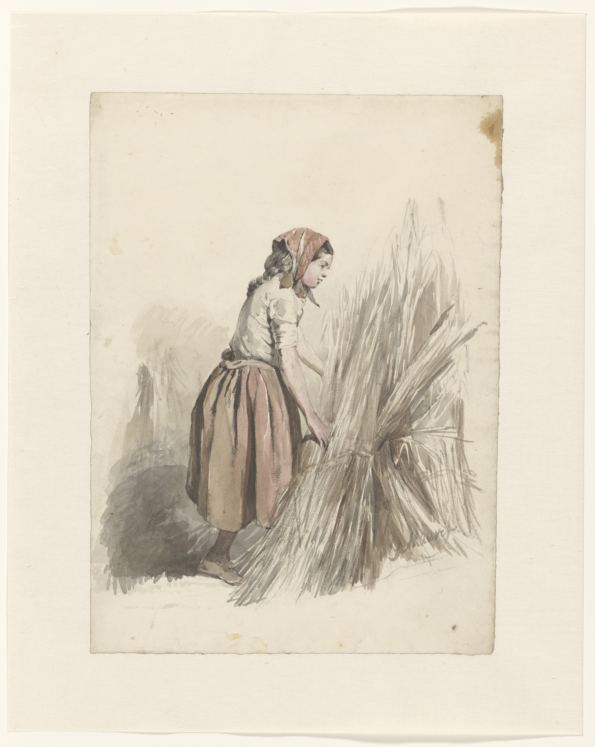 Meisje met hoofddoek, werkend op het land