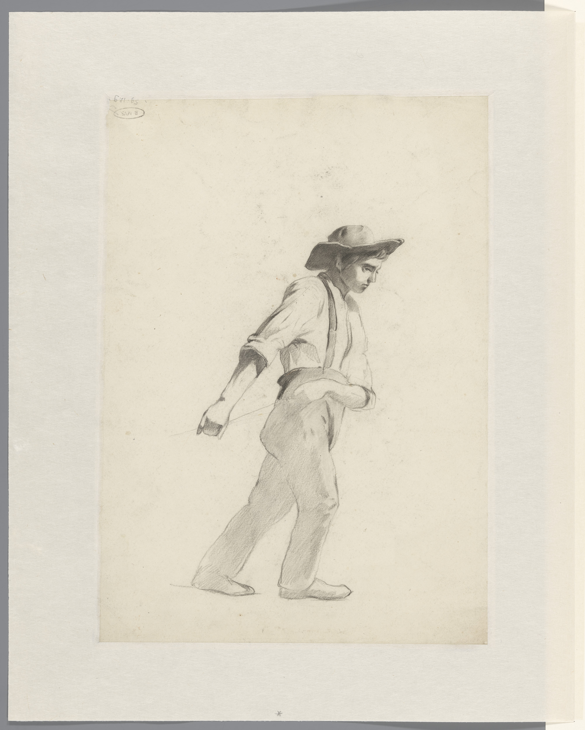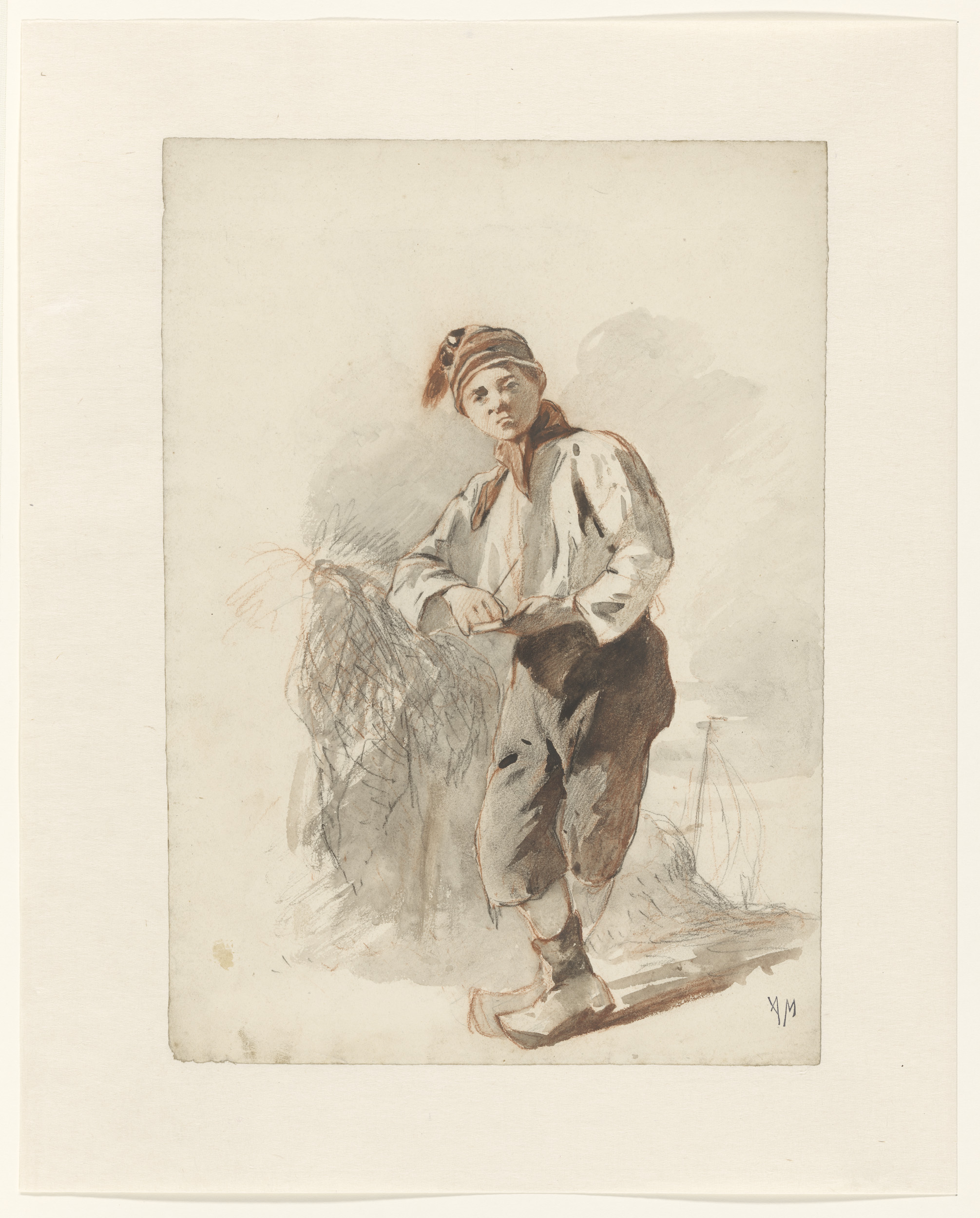Staande vissersjongen met muts