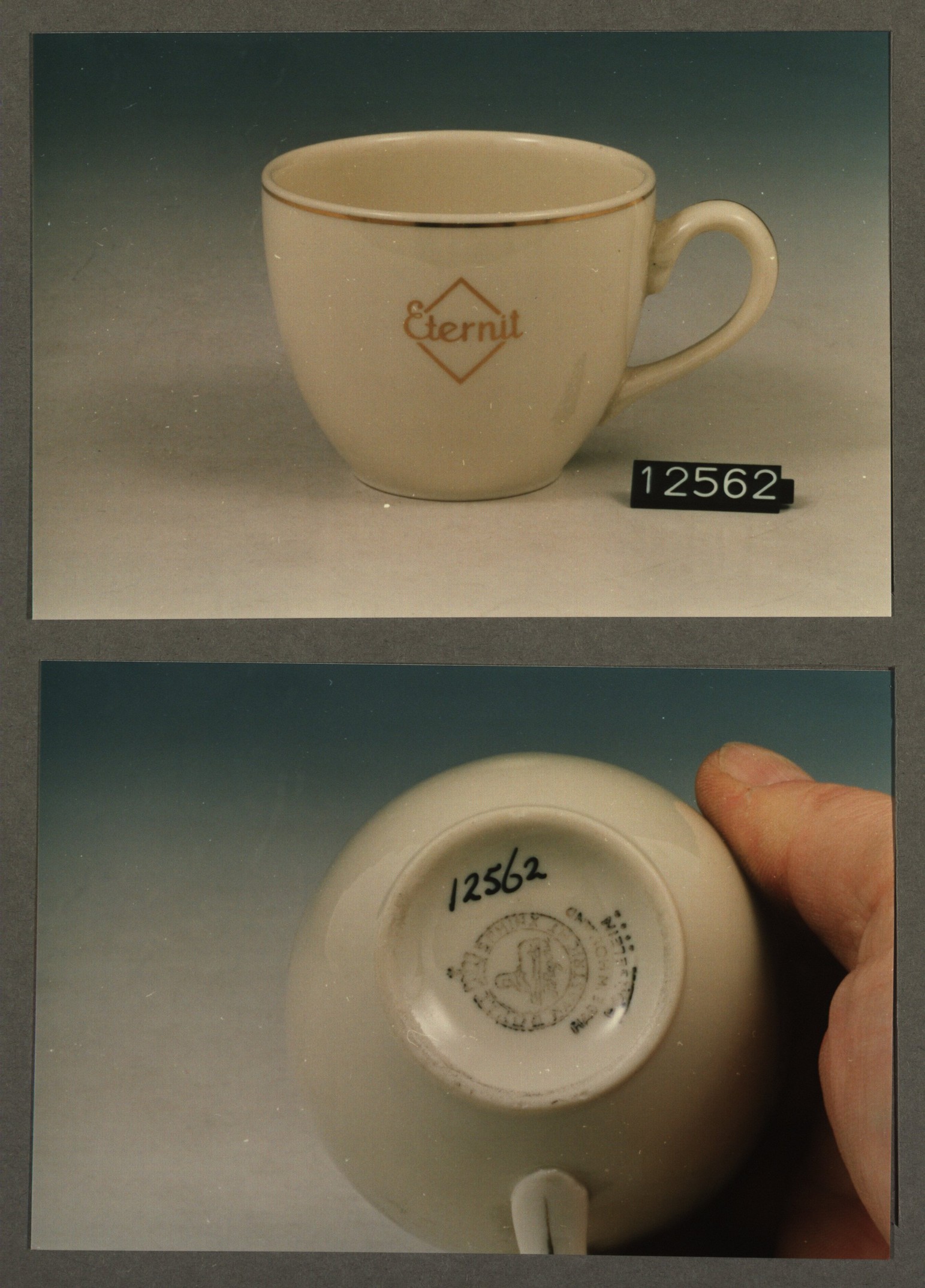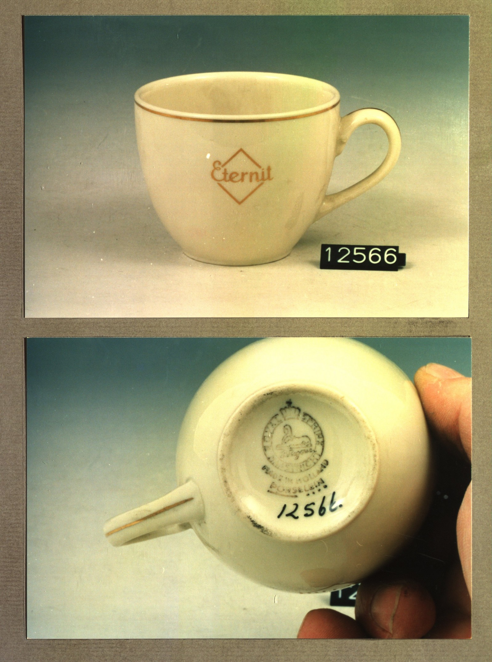 Kop met opschrift, model N met decor Eternit fabriek