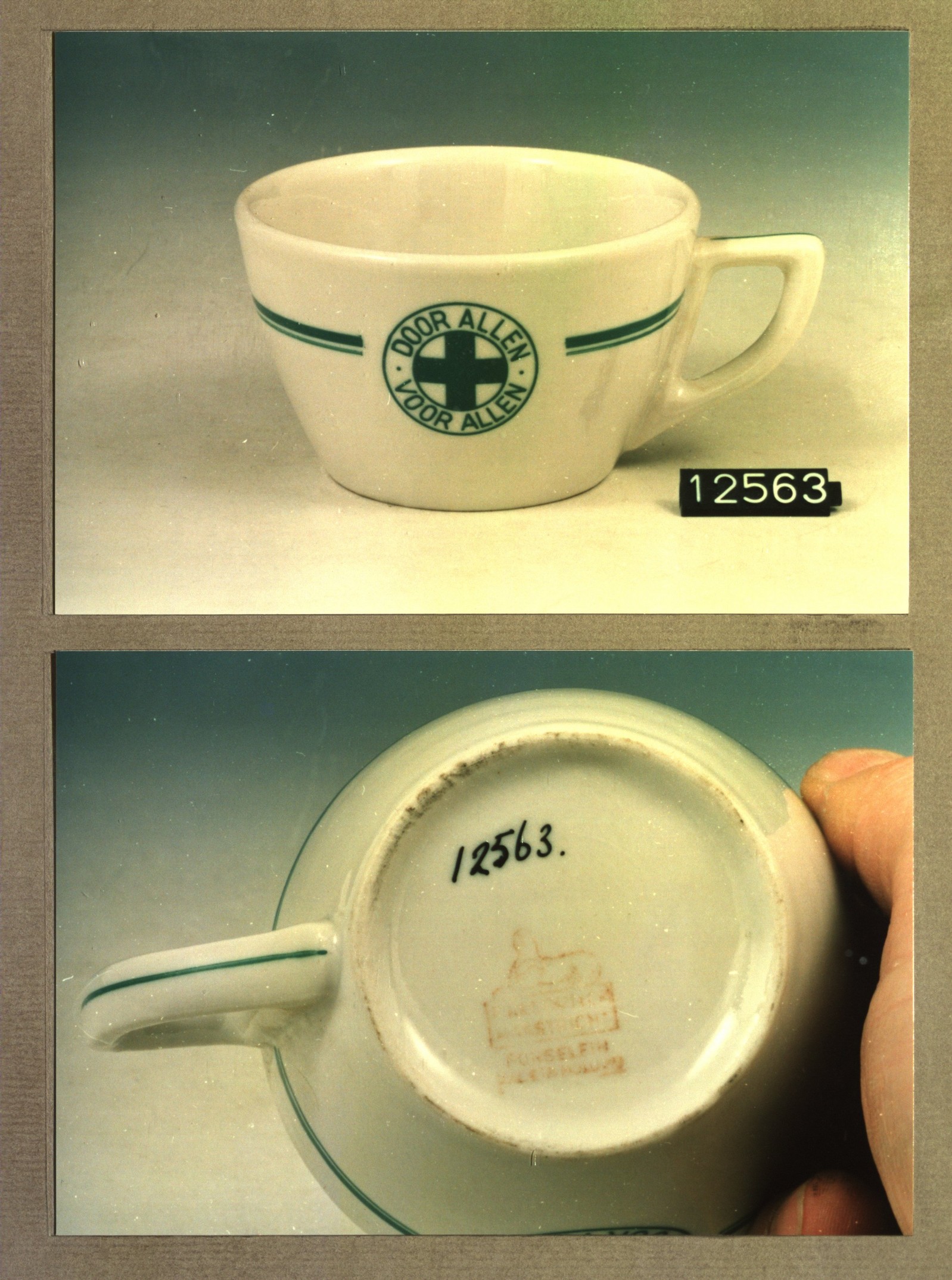 Kop met opschrift, model P met decor Groene kruis