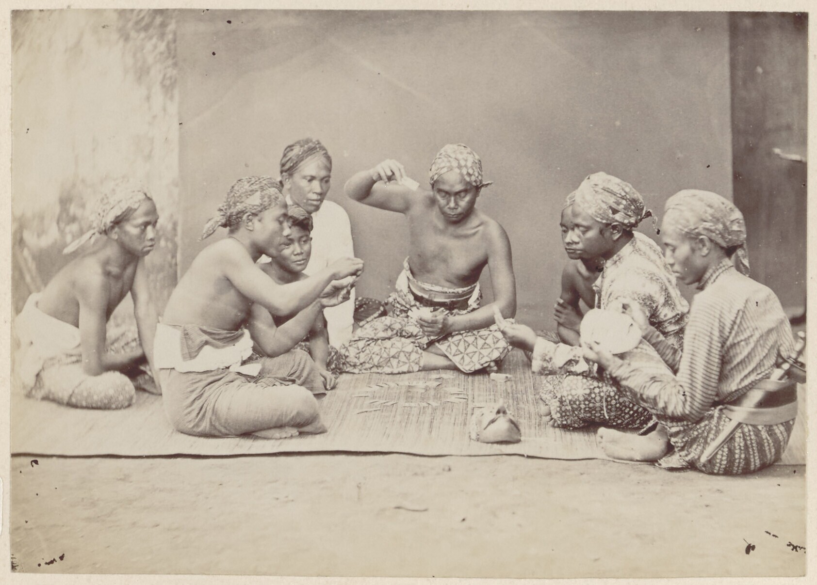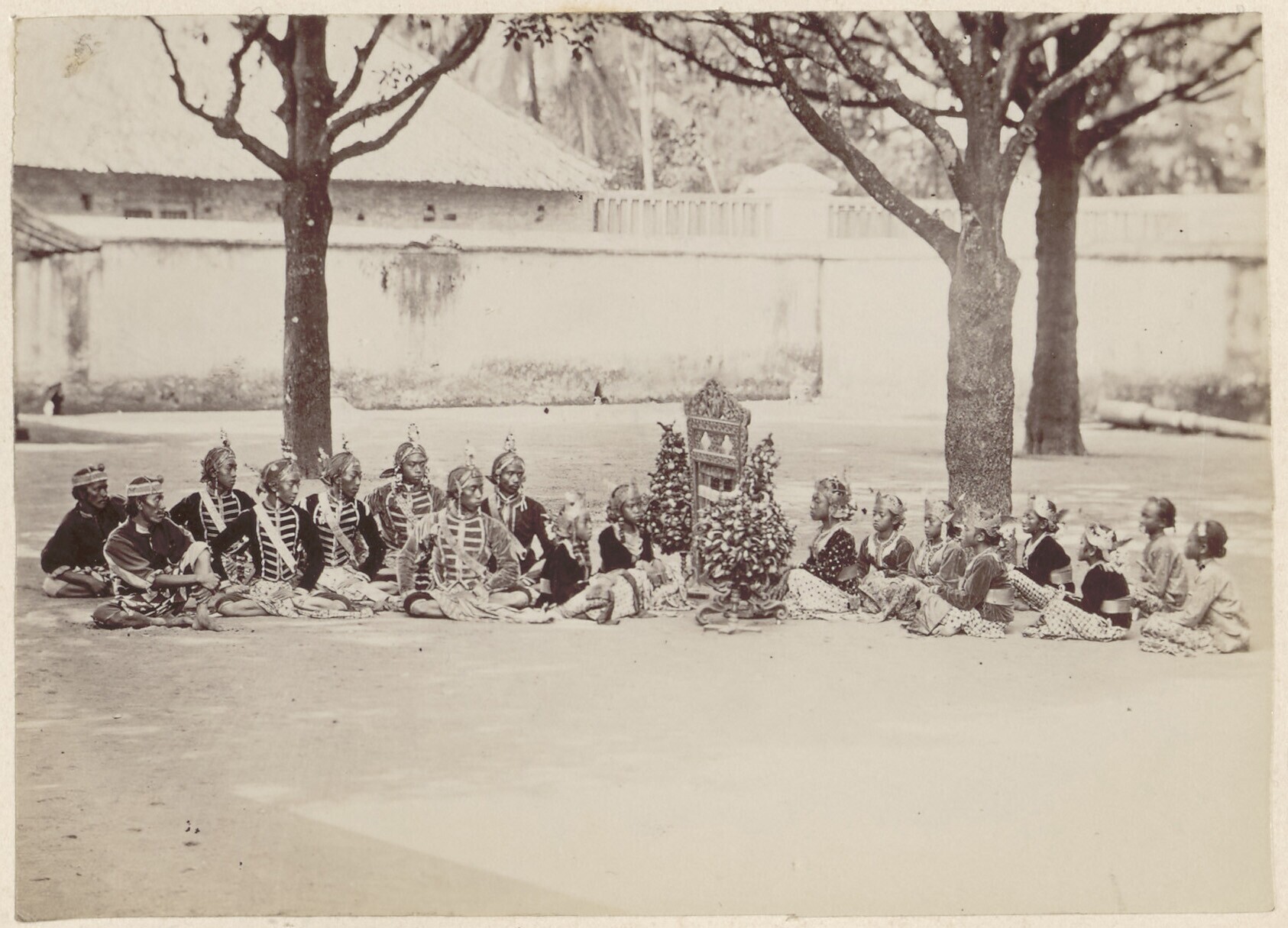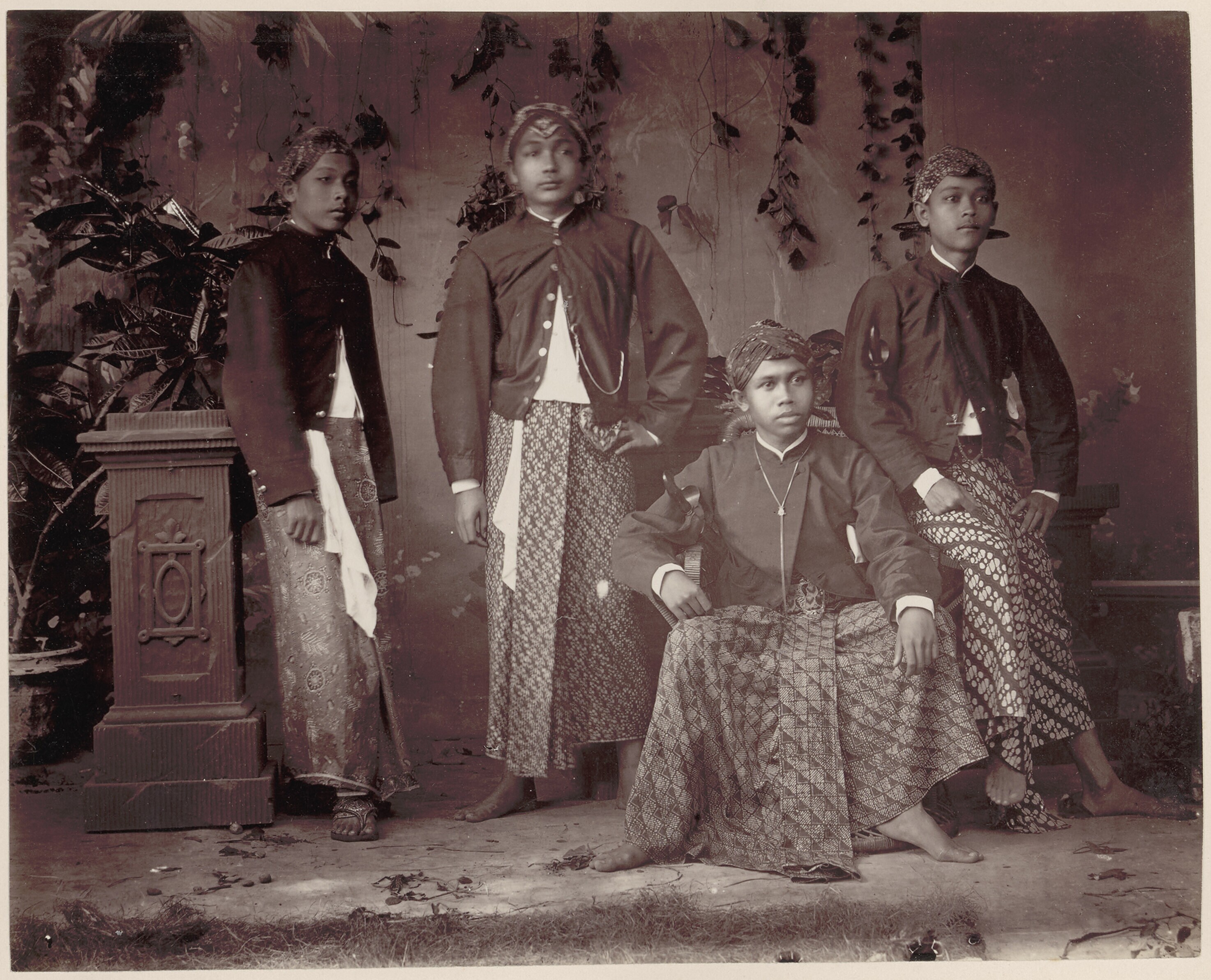 Studioportret met een groep Javaanse mannen tijdens ...