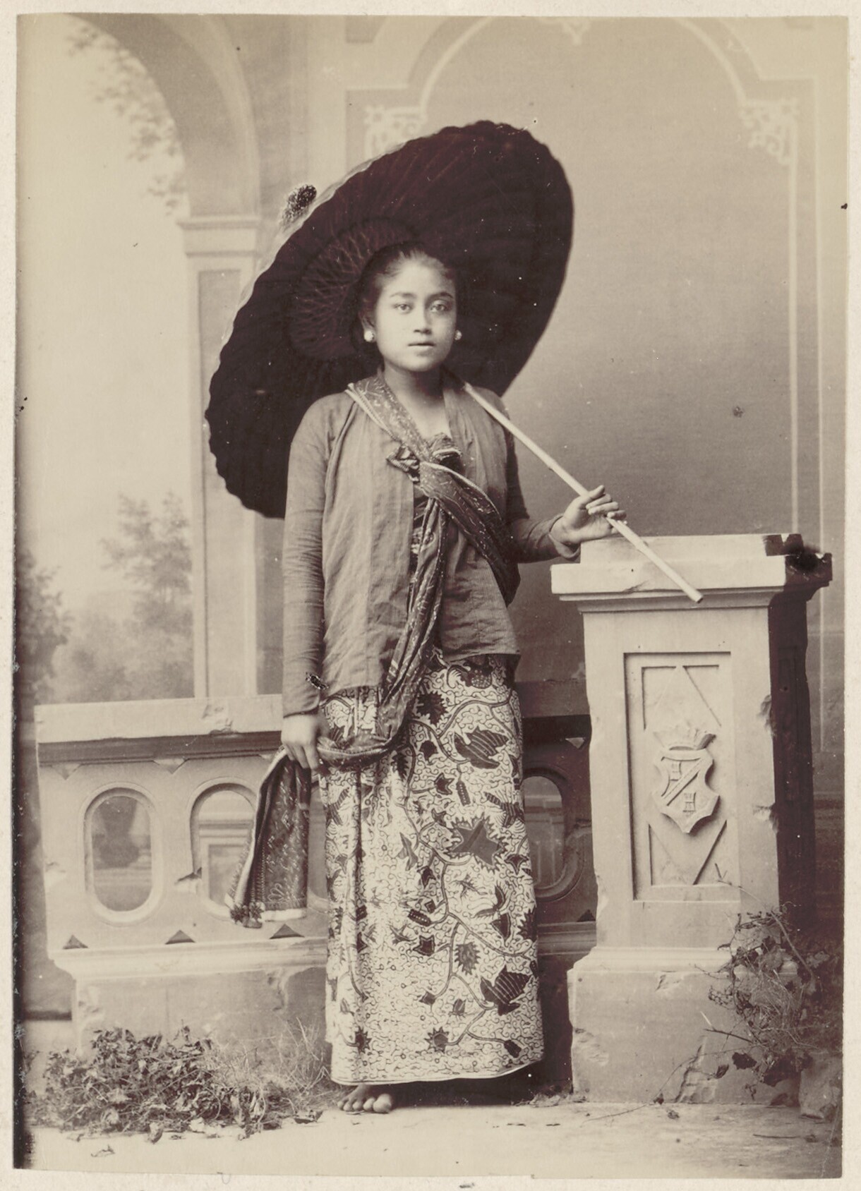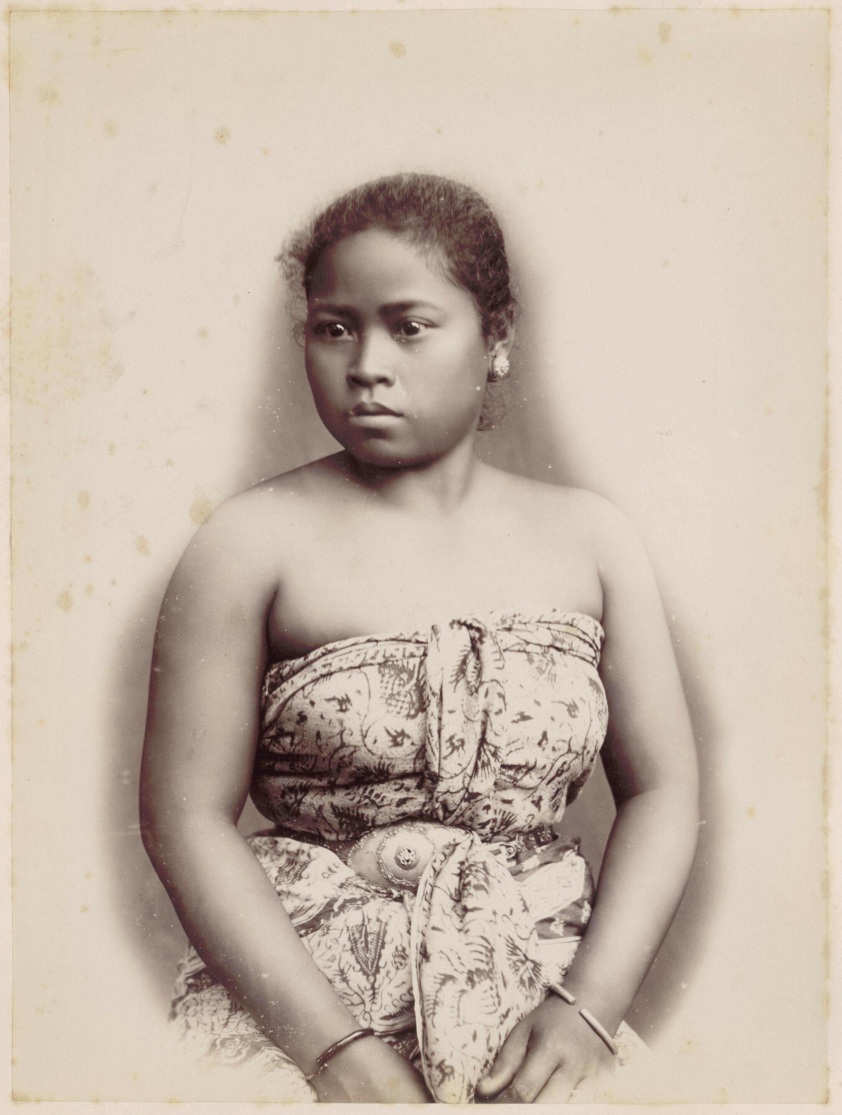 Studioportret van een jonge vrouw uit Batavia
