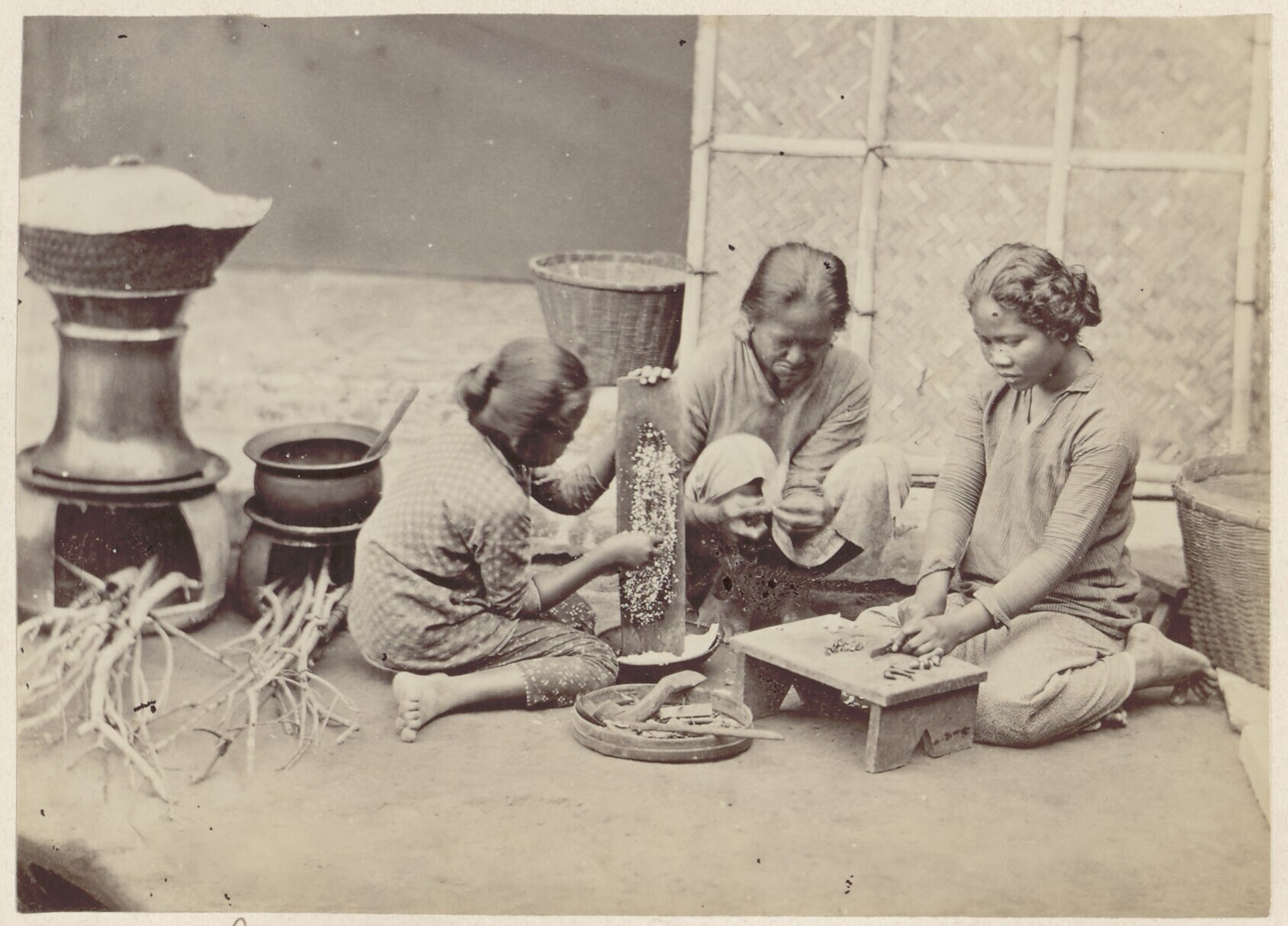 Studioportret van drie Javaanse vrouwen tijdens het ...