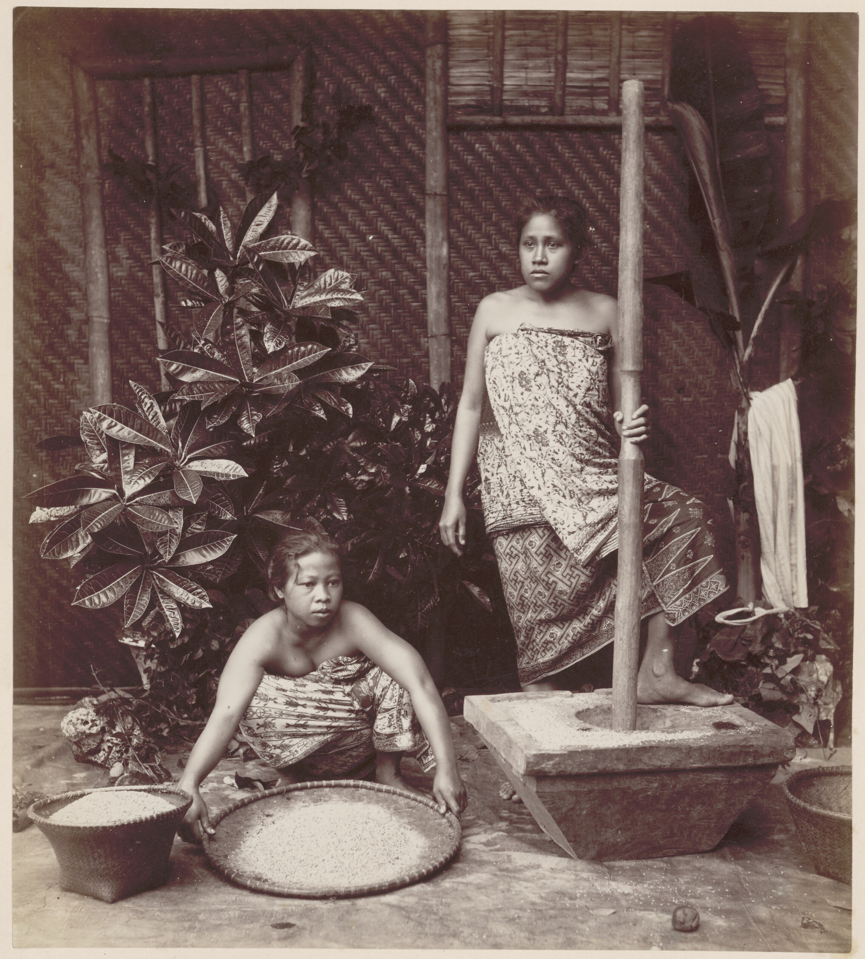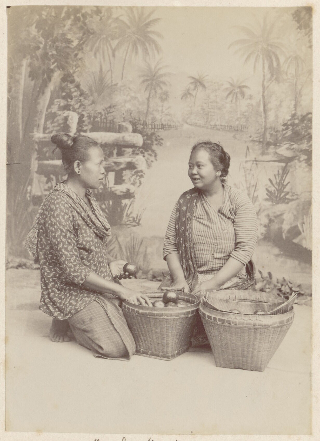 Studioportret van twee Javaanse vrouwen tijdens het ...