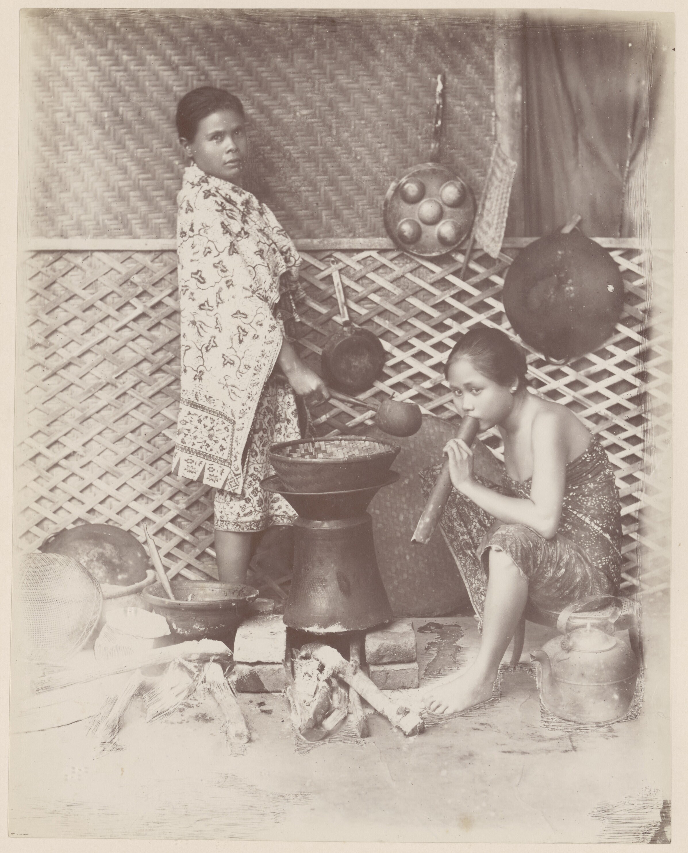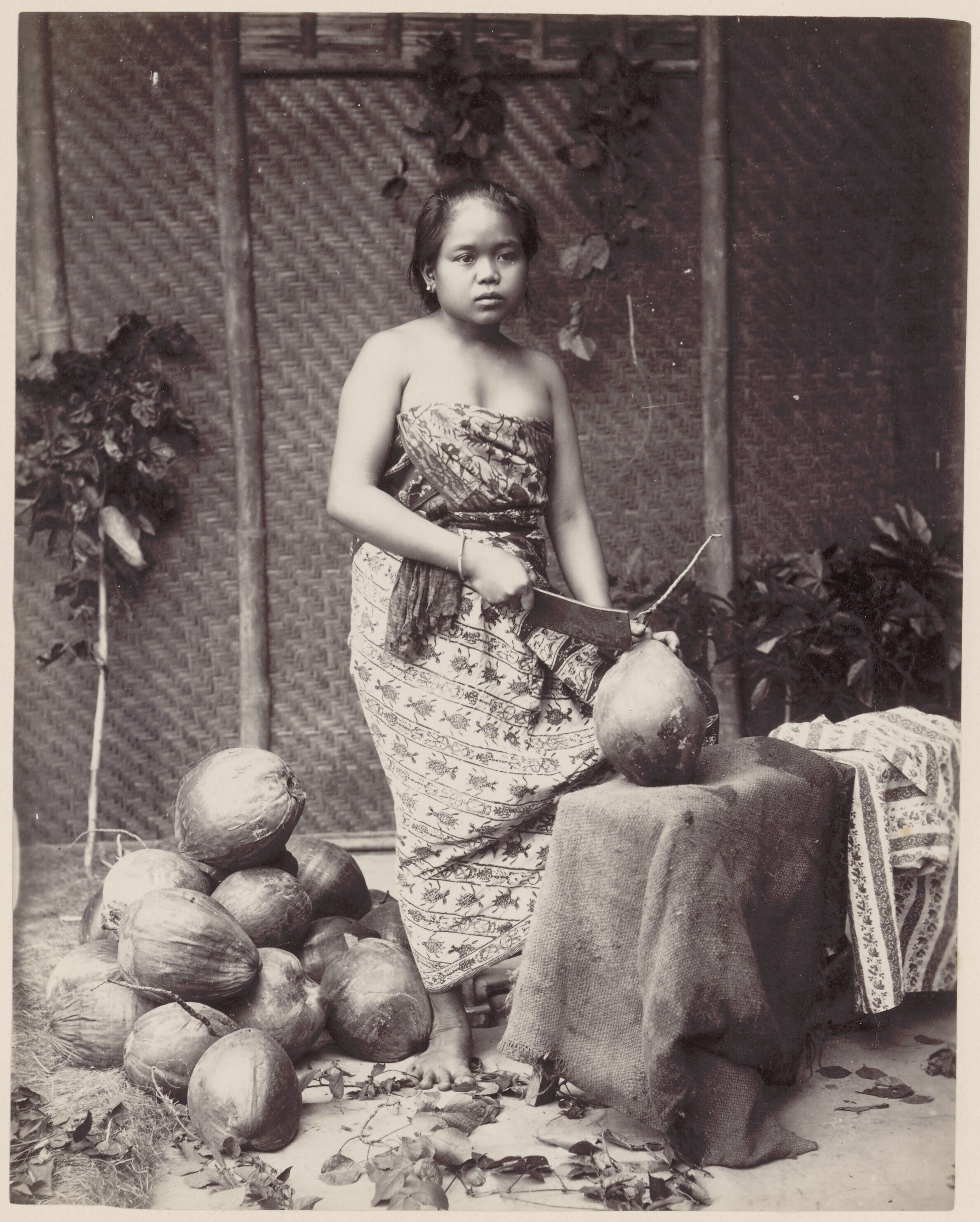 Studioportret van een Javaanse keukenmeid die bij ee...