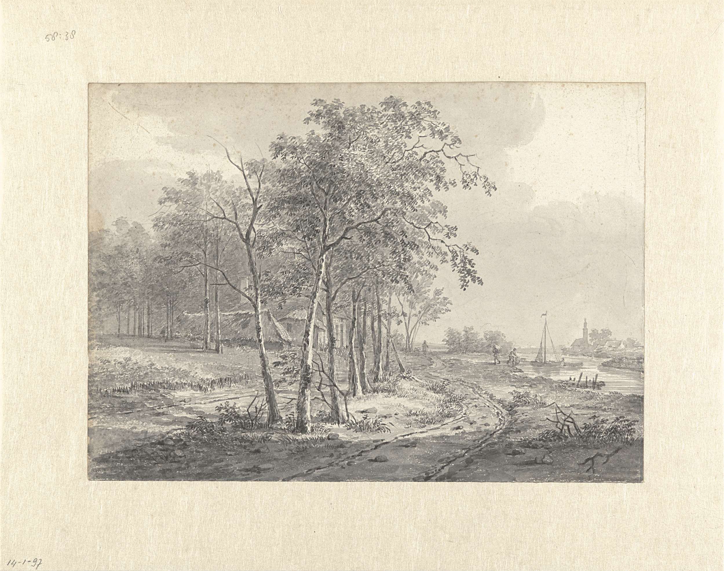 Landschap met een weg langs een water