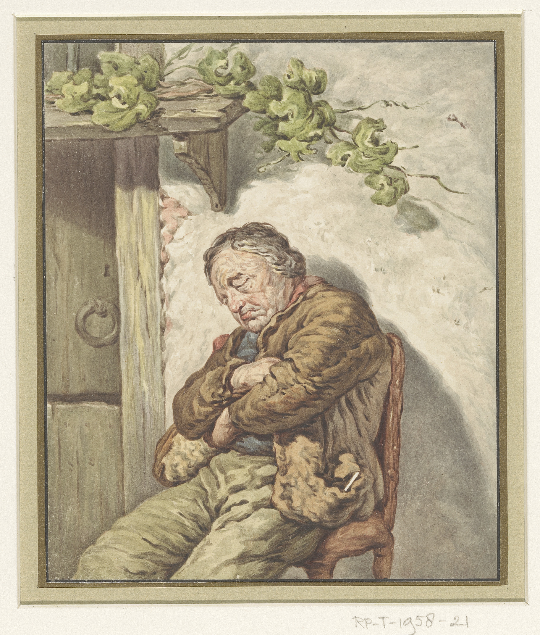 Lou de knecht van de bakker, voor het huis ingeslape...