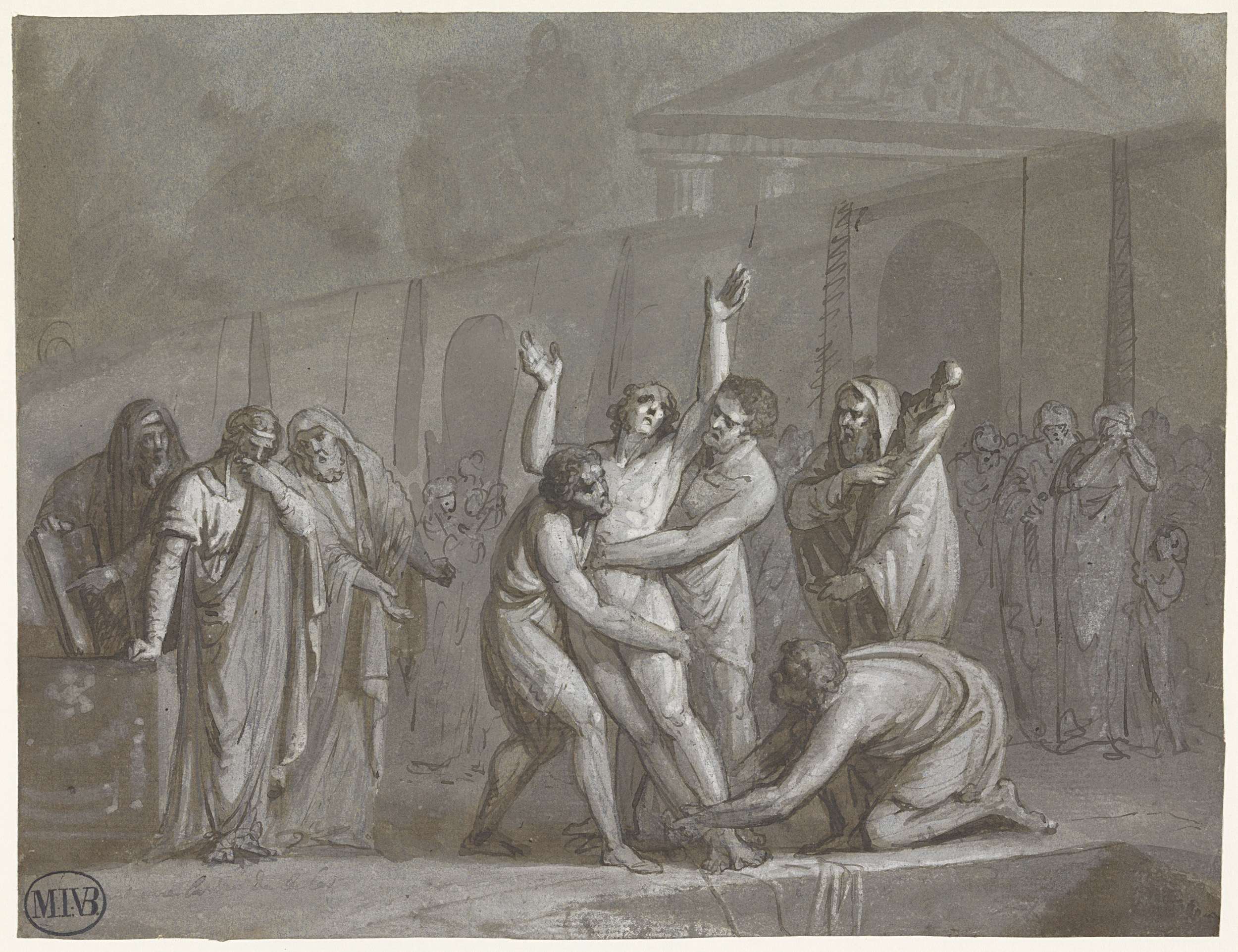 Marktscène met ruziënde vrouwen