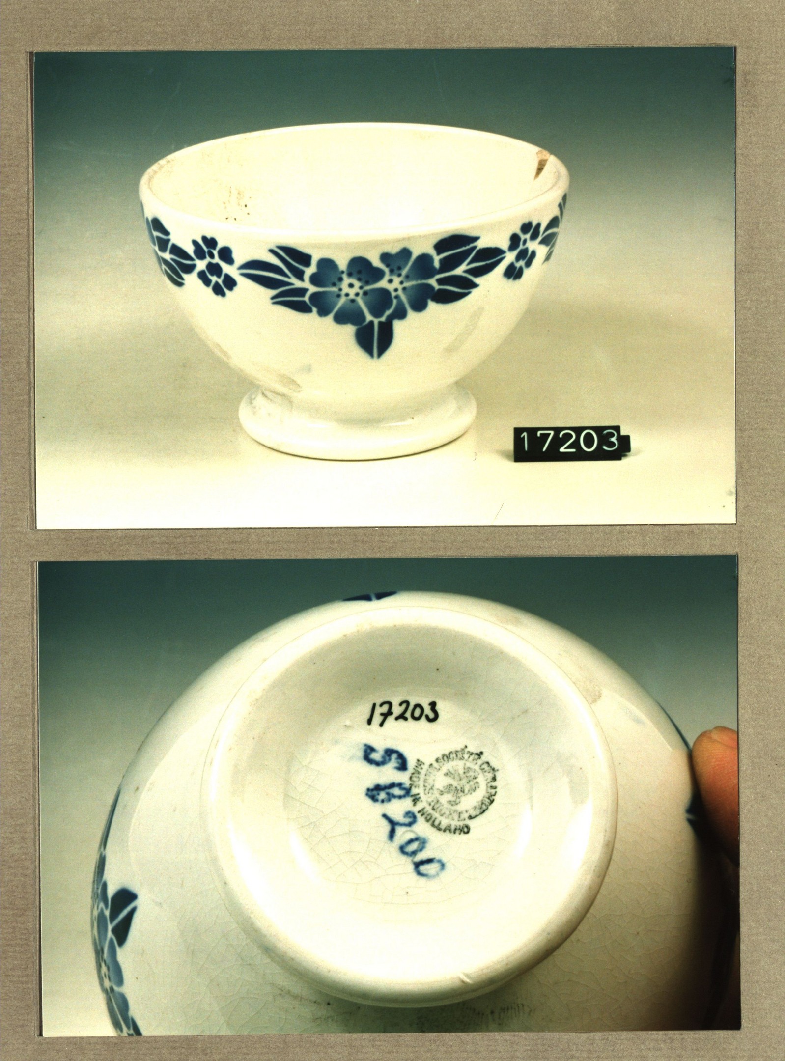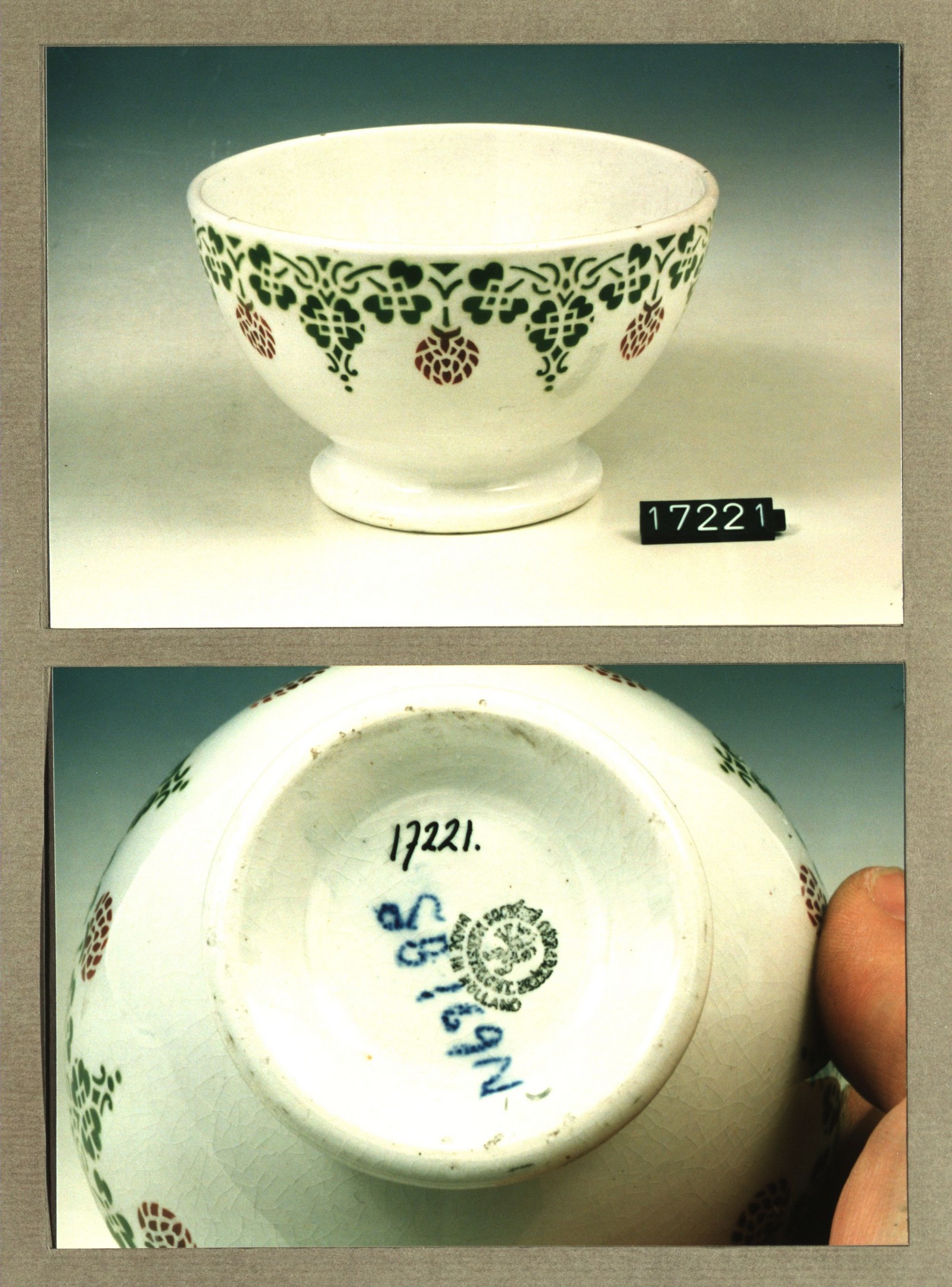 Kom zonder deksel, model Hollandaise met decor 368A