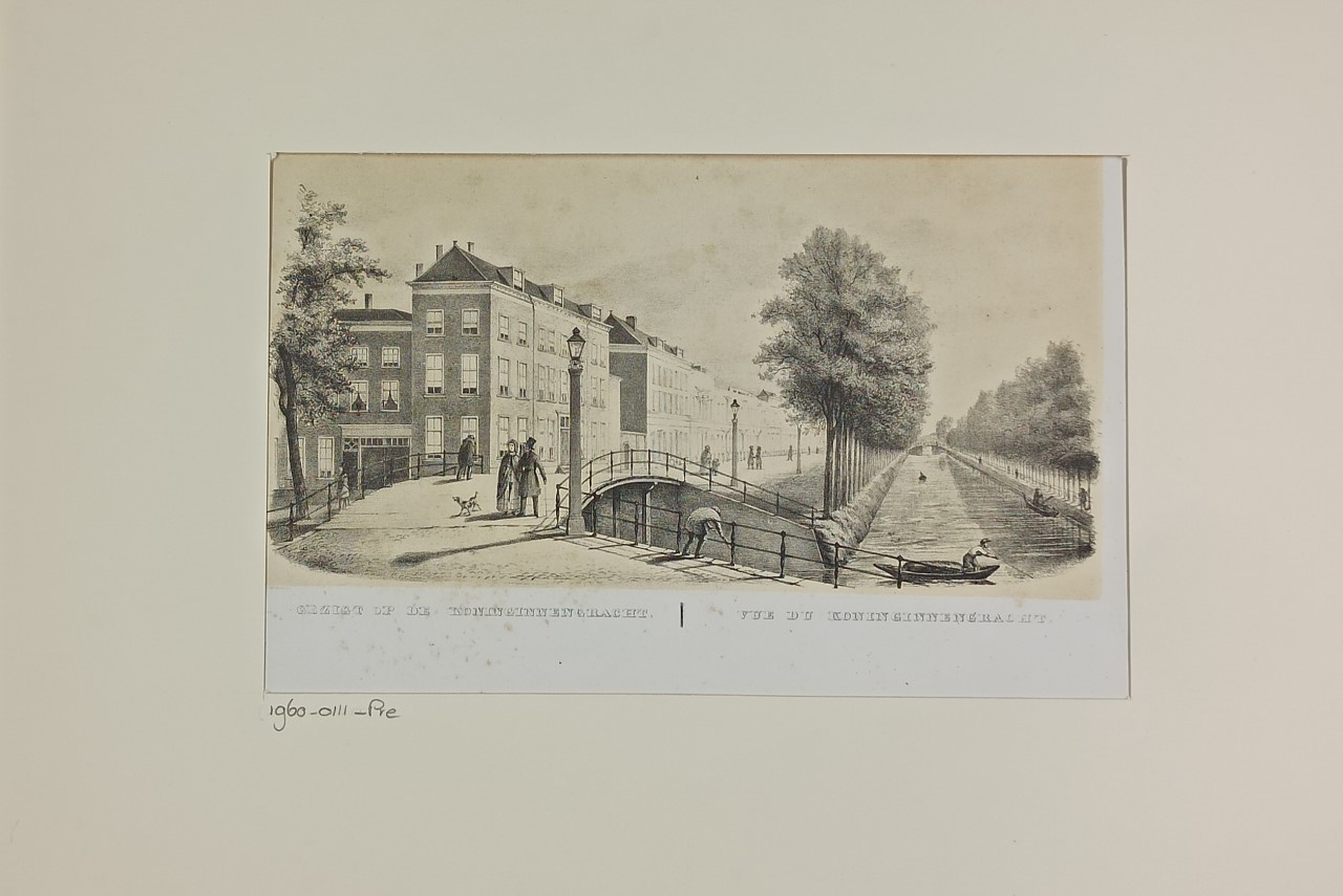 Gezicht op de Koninginnegracht vanaf de brug bij de ...