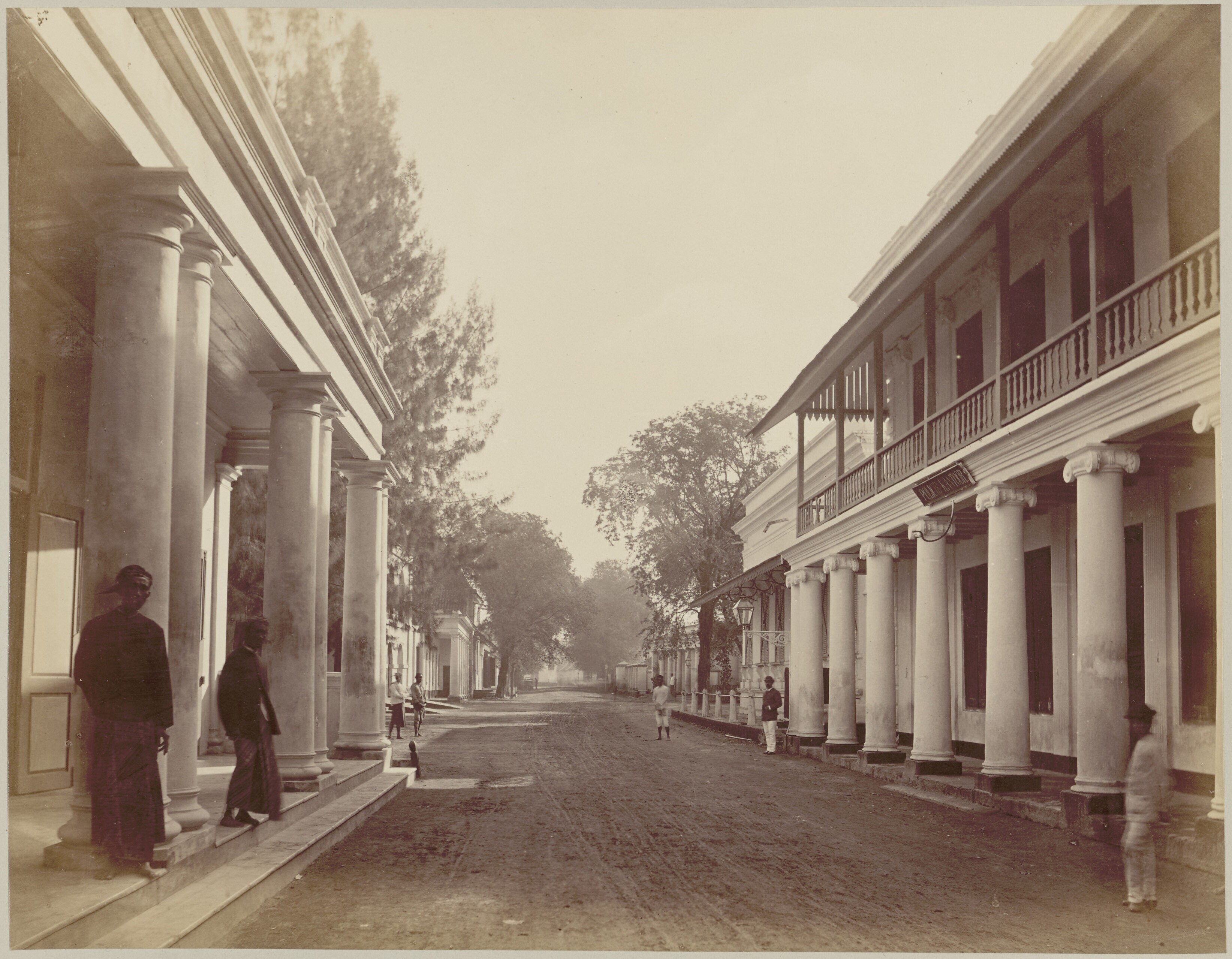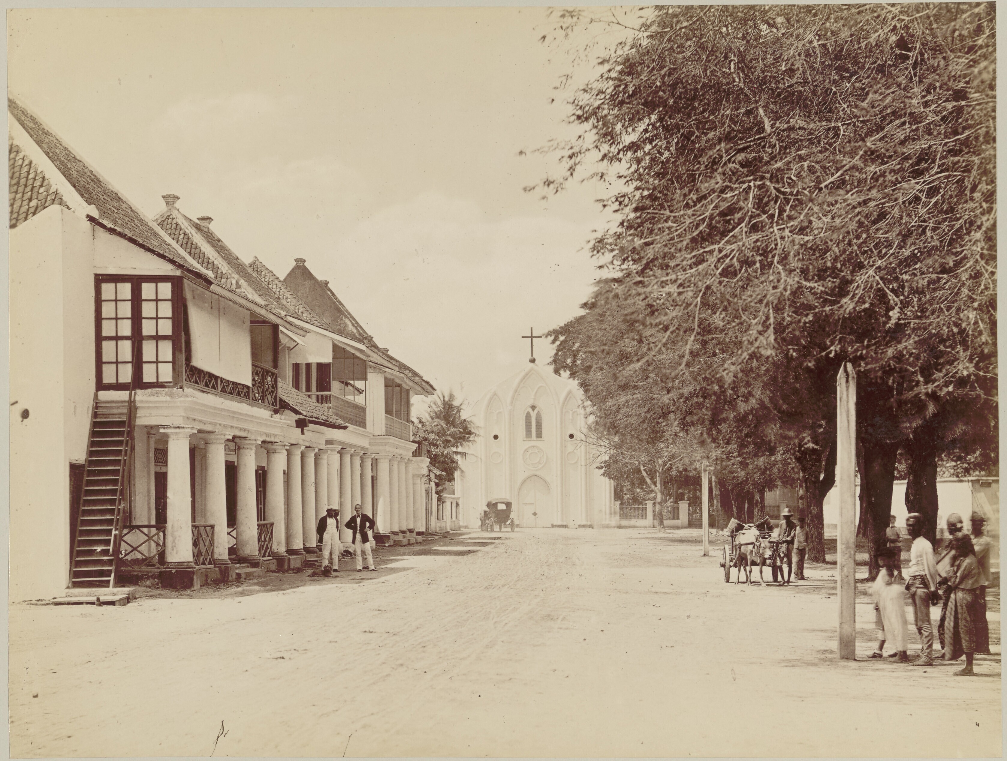 Straatgezicht met de rooms-katholieke kerk, Soerabaja