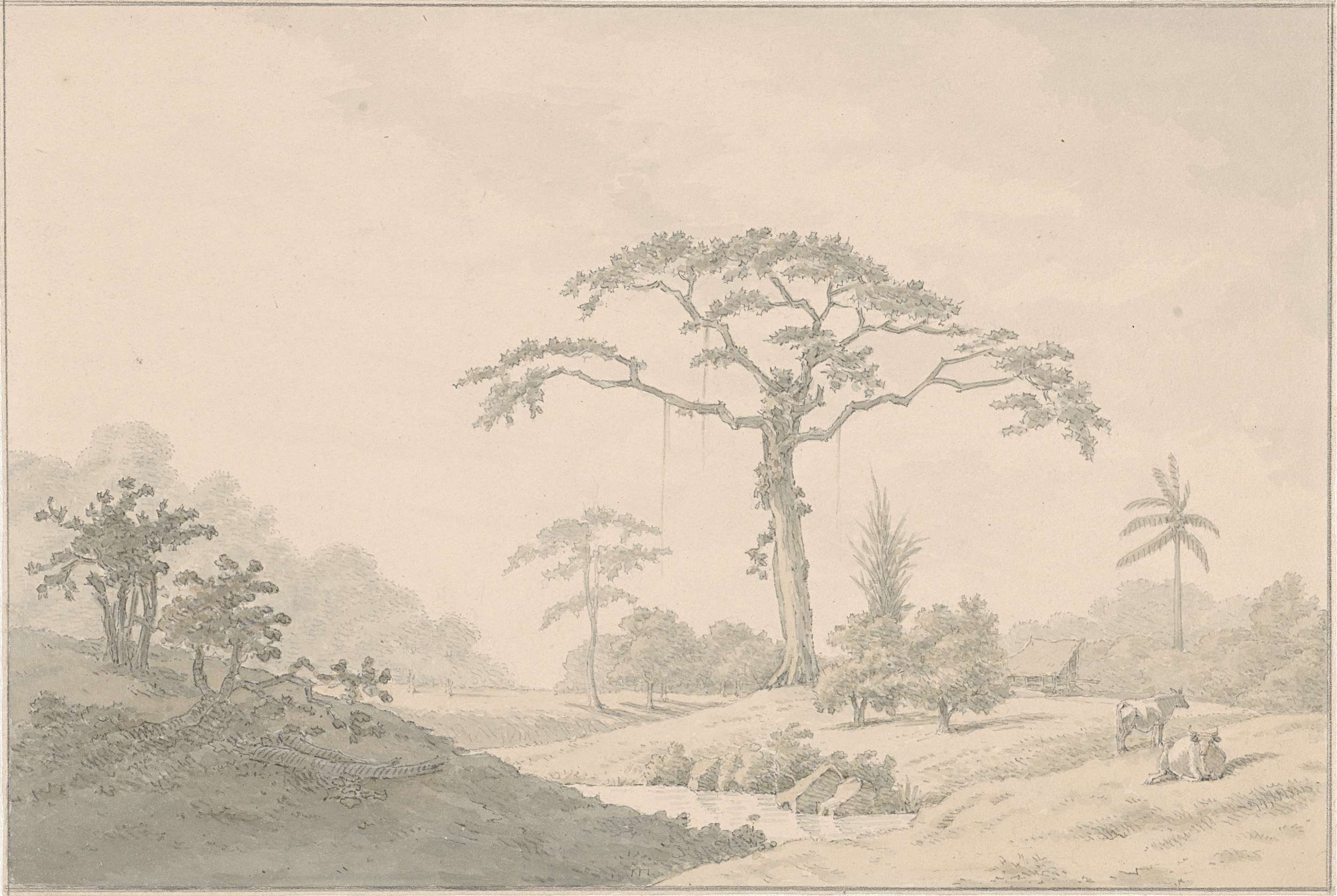 Gezicht bij een hoeve in Suriname