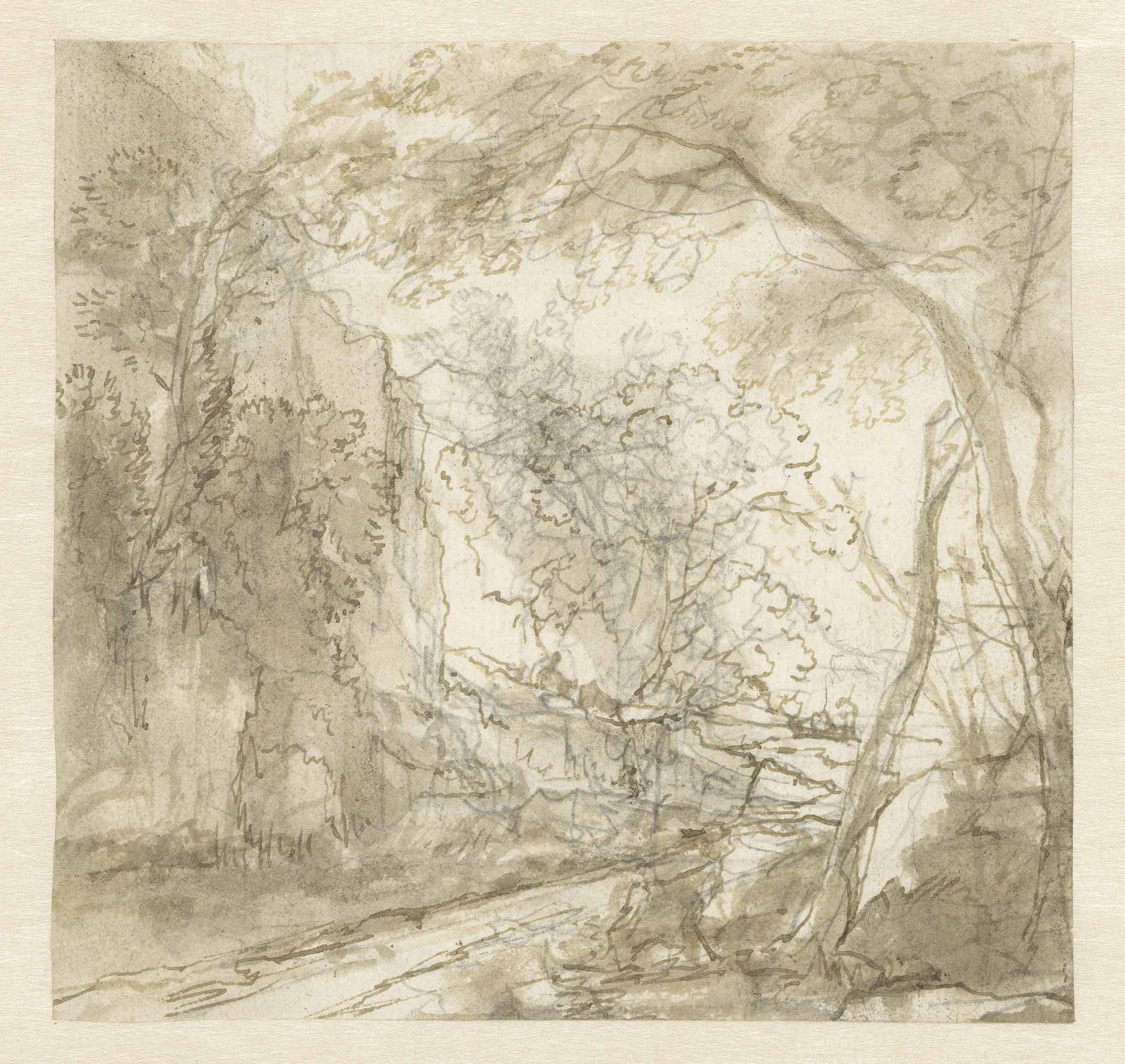 Landschap met weg tussen bomen
