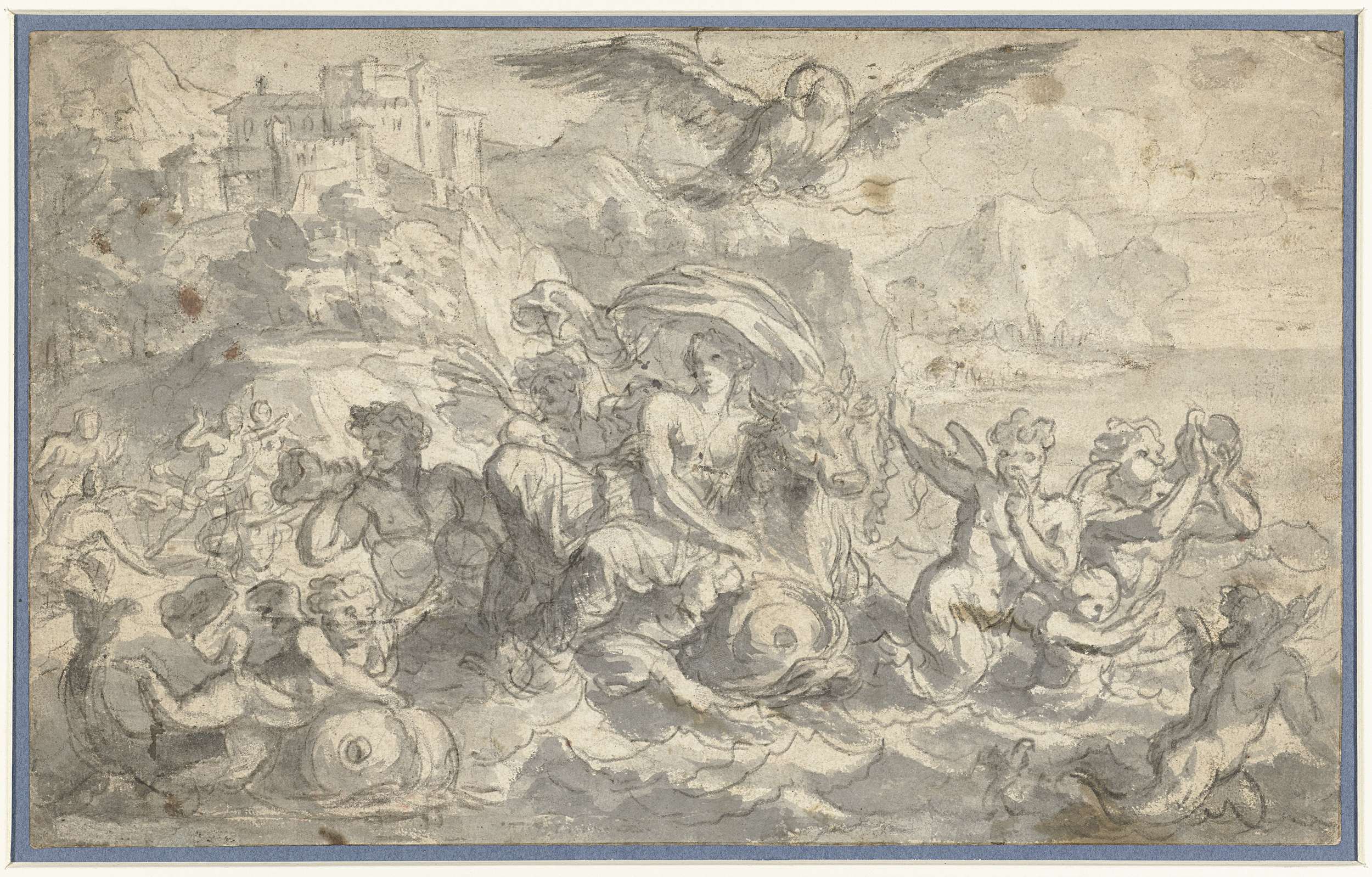Europa en de stier omgeven door zeegoden