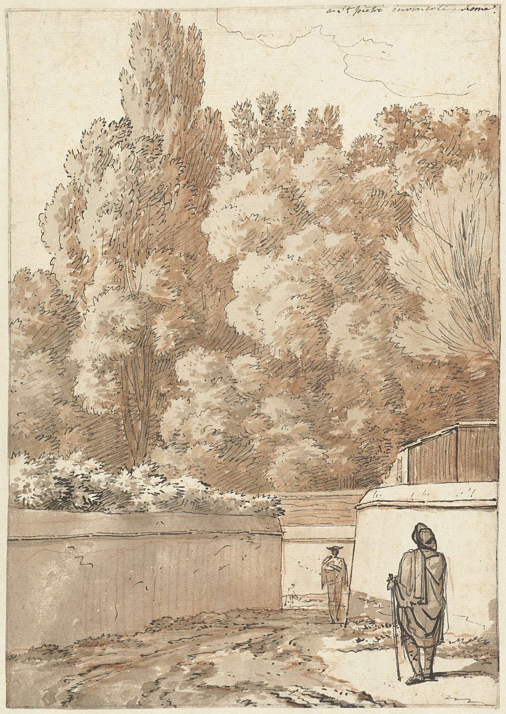 Wandelaars tussen tuinmuren