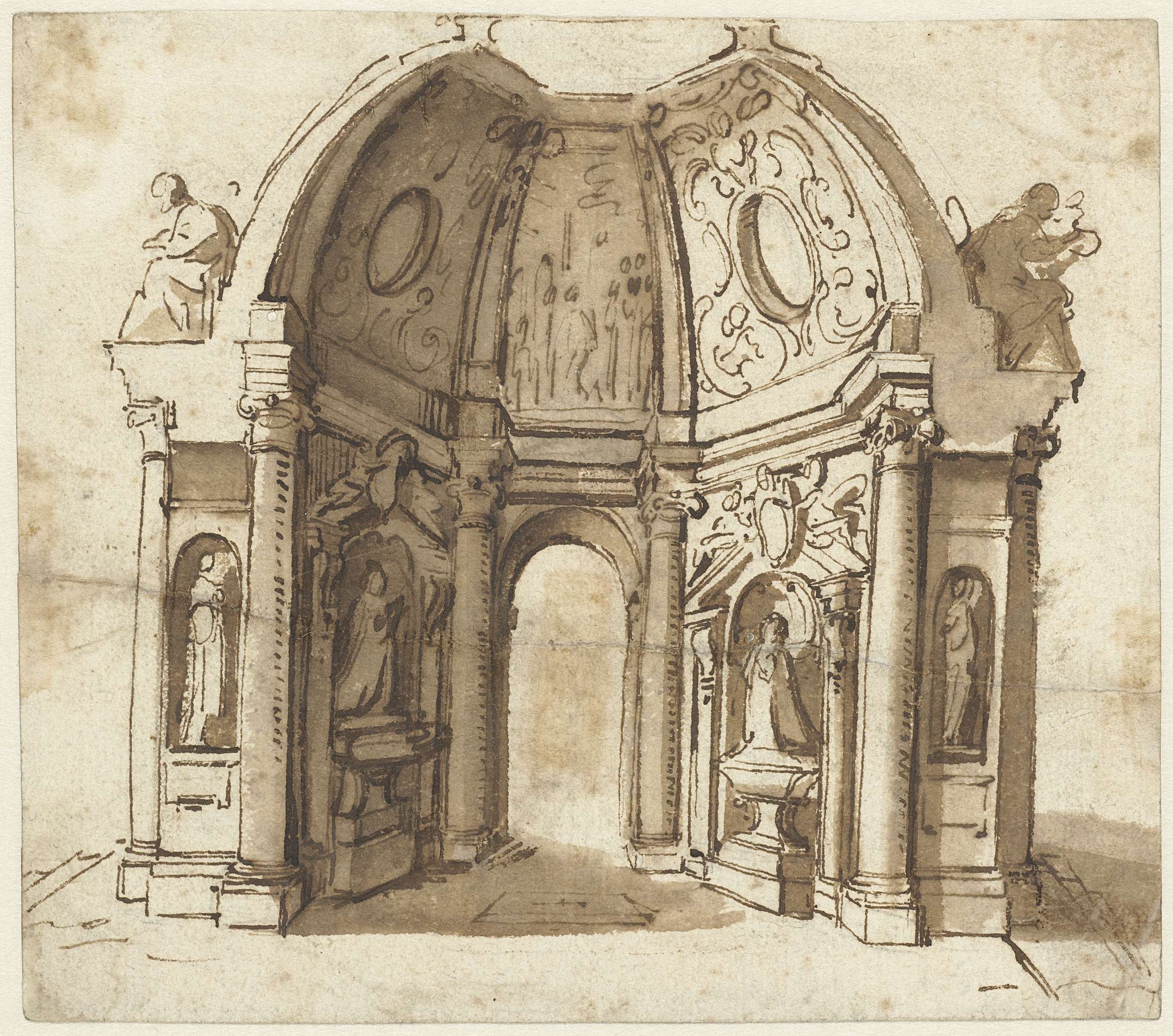 Ontwerp voor grafkapel met aan weerszijden een tombe