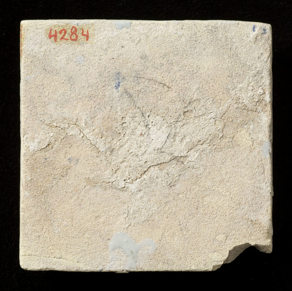 tegel van aardewerk met tinglazuur, voorstellende: l...