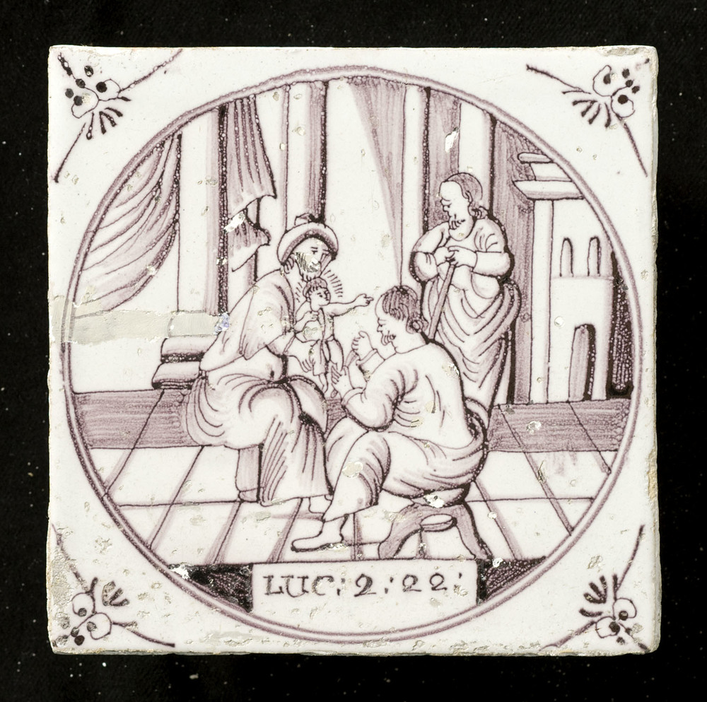 Tegel in tinglazuur, voorstellende luc. 2:20 De besn...