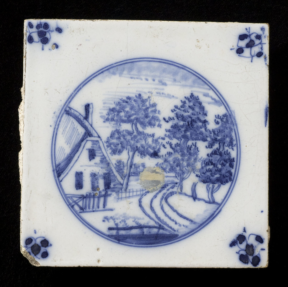 tegel van aardewerk met tinglazuur, voorstellende: h...
