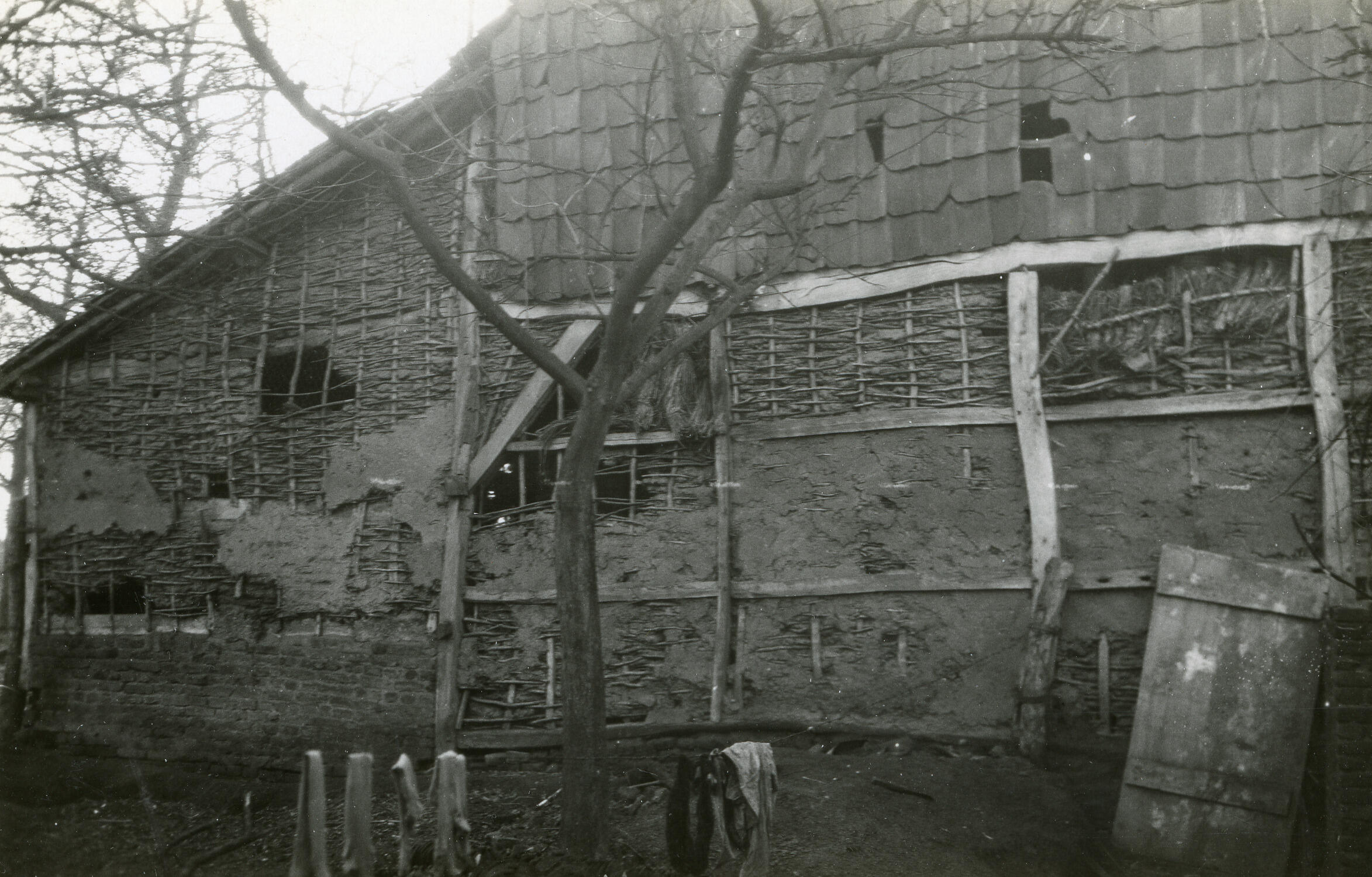 Leemvakwerkwand, Guttecoven, 1930 (zwart-wit foto)