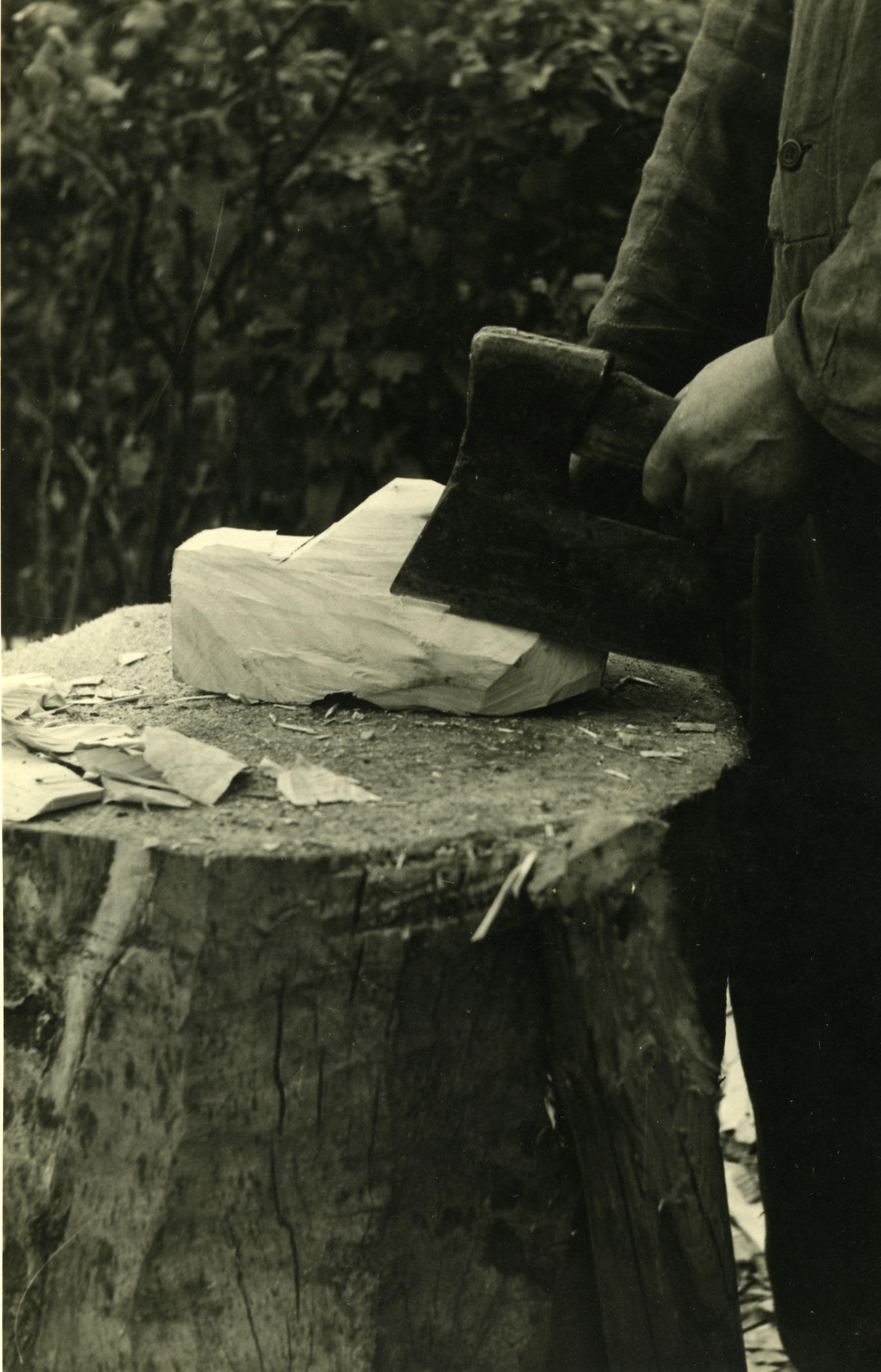 Kloven van hout, Veessen, 1945 (zwart-wit foto)