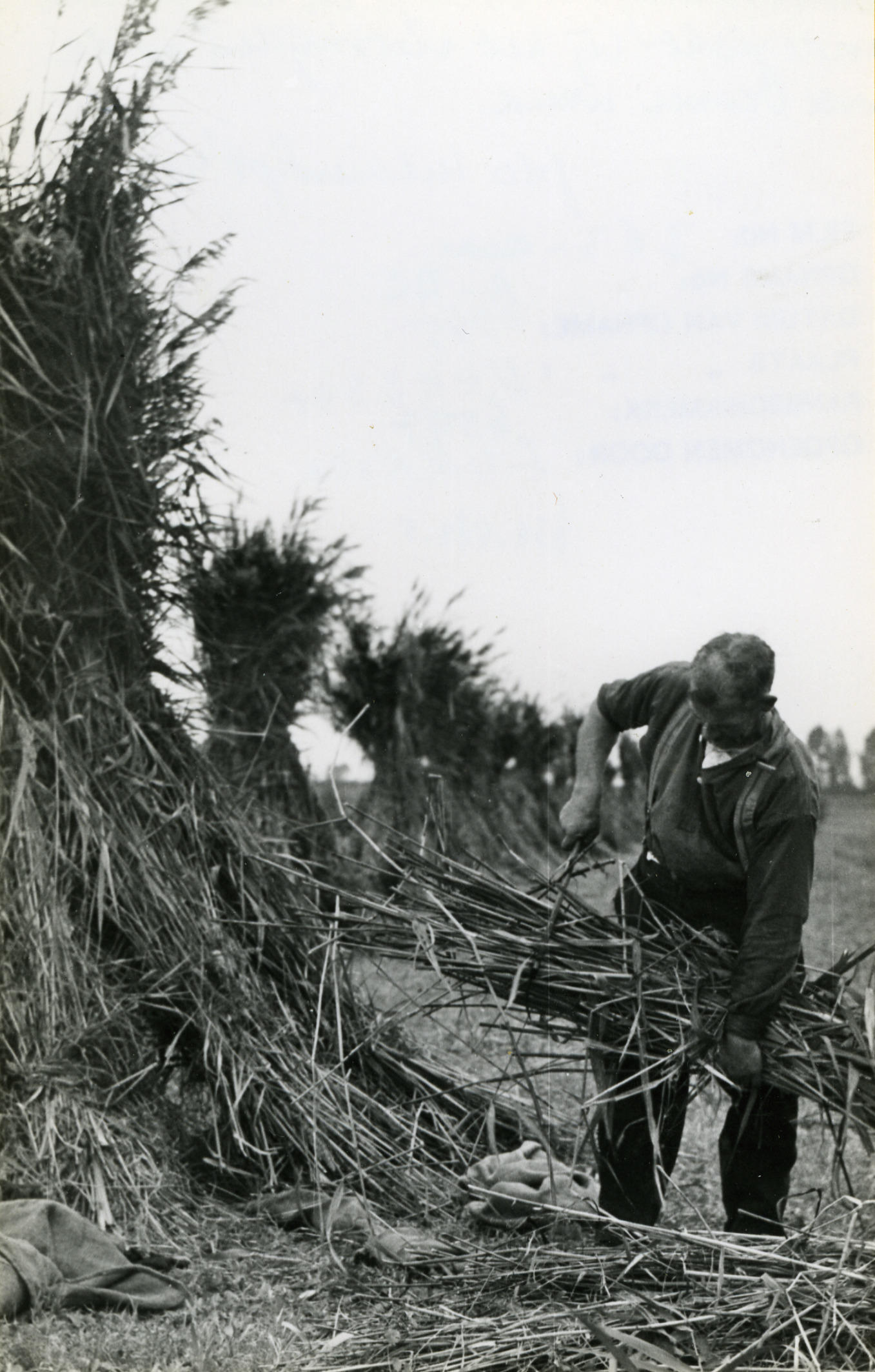Bijeengaren van gemaaid riet, Veessen, 1945 (zwart-w...