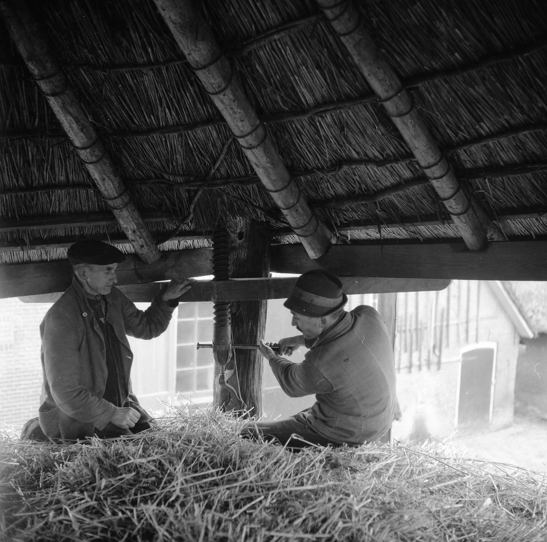 Top van rieten kap, Veessen, 1945 (zwart-wit negatief)