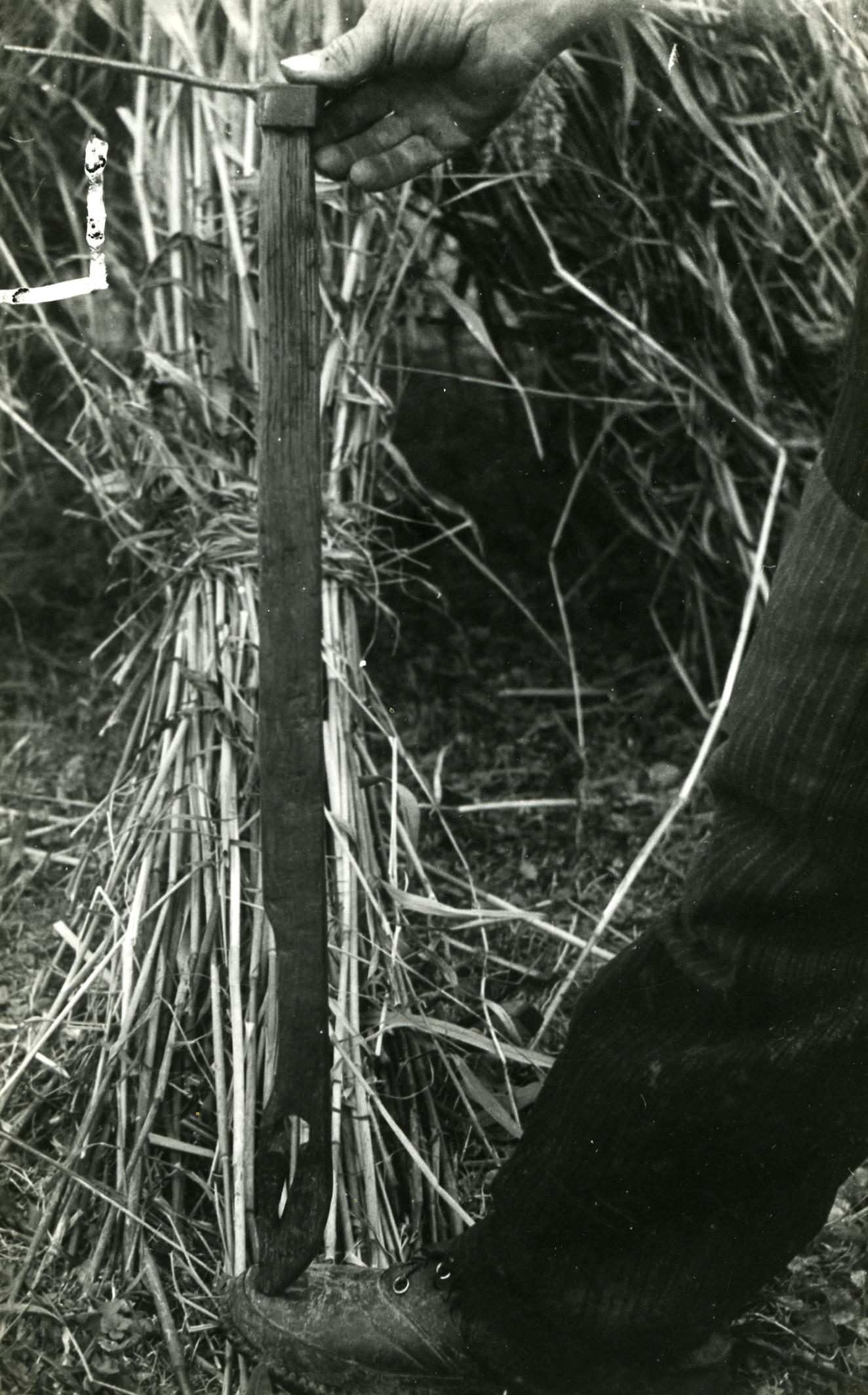 Rietmaaiersgereedschap, Veessen, 1945 (zwart-wit foto)