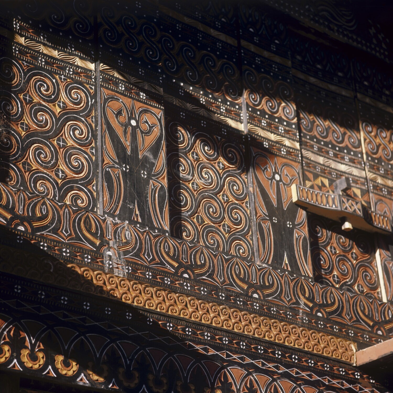 Houtsnijwerk van een rijstschuur in het dorp Maranta...