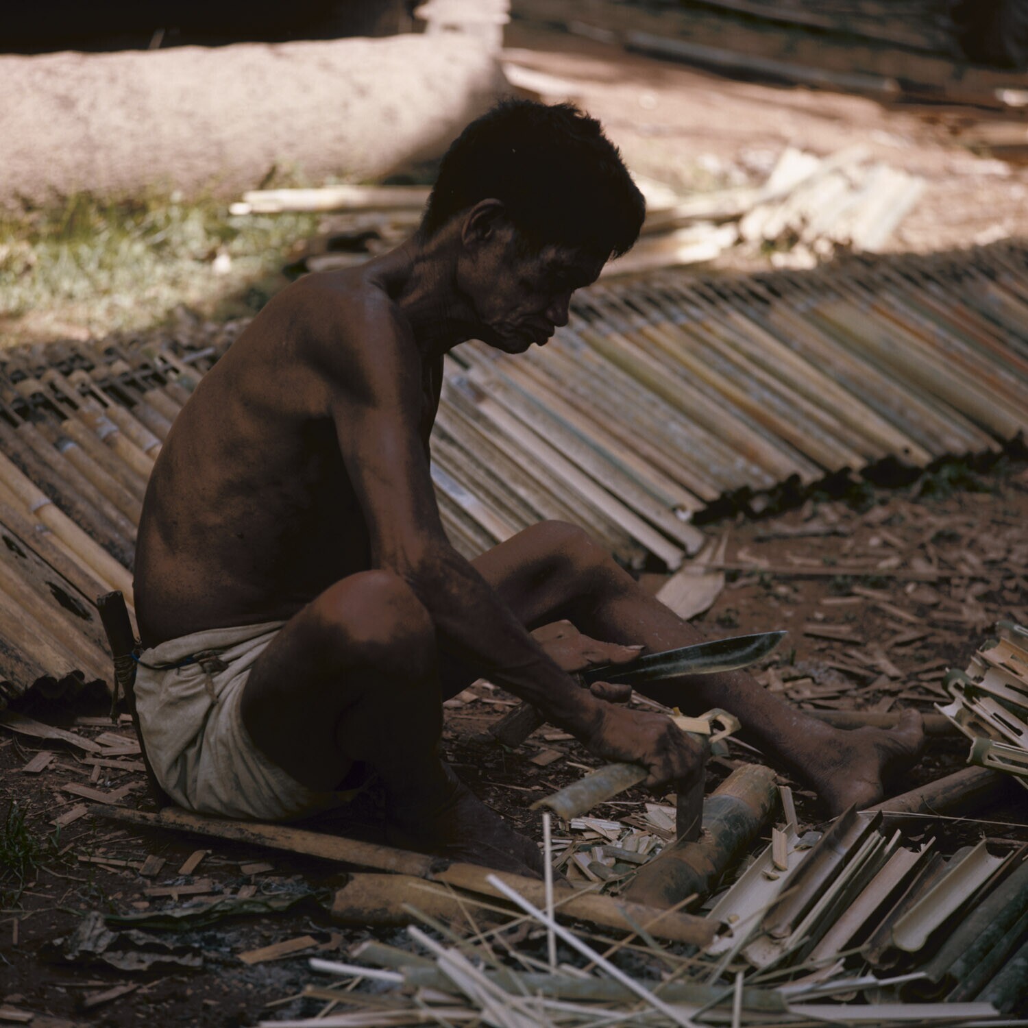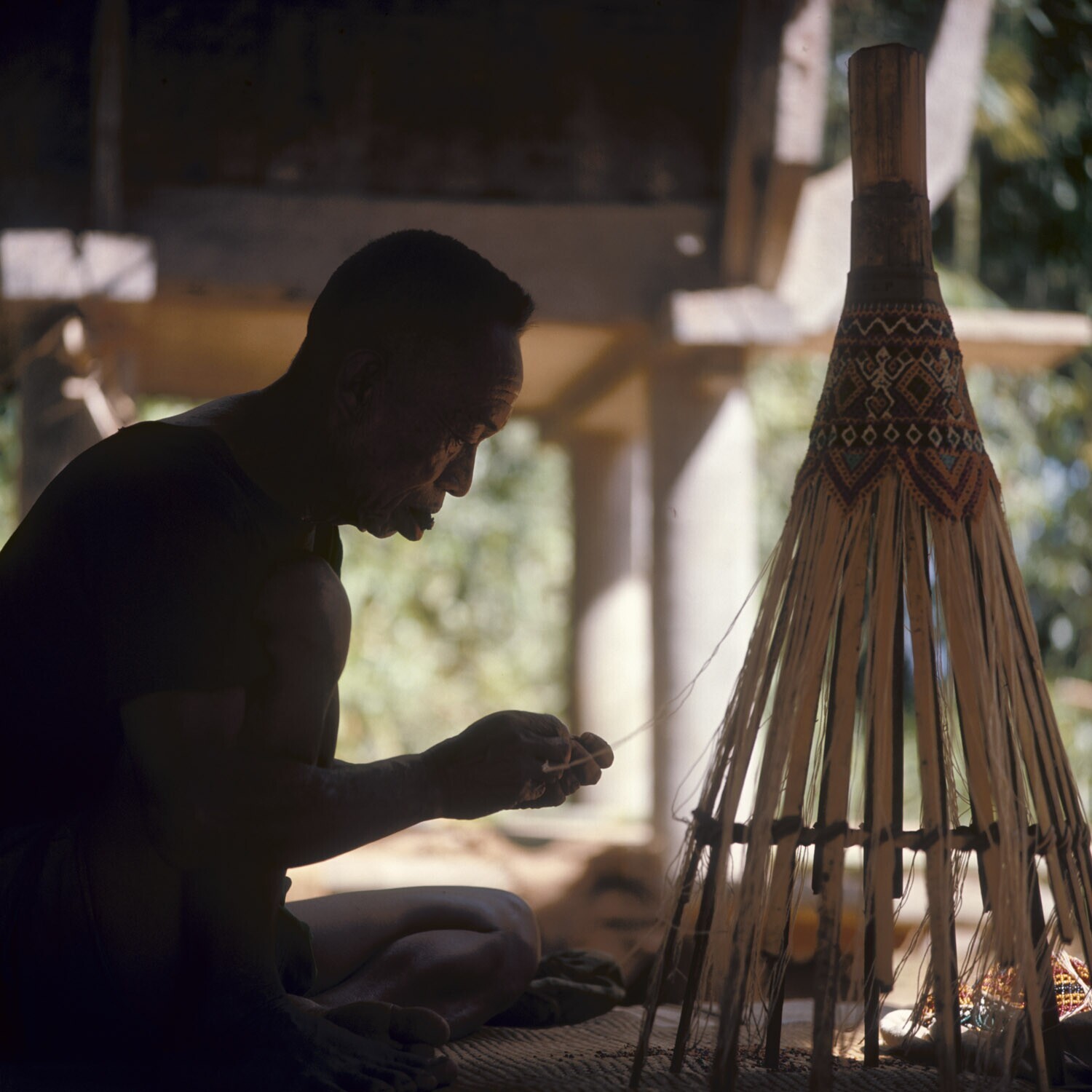 Man is aan het kralenvlechten, Marante, Sulawesi