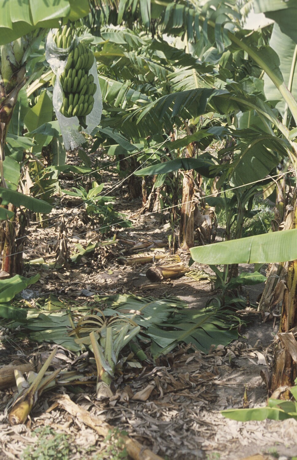 Santa boma polder; jonge bananentros vóór het afwrij...