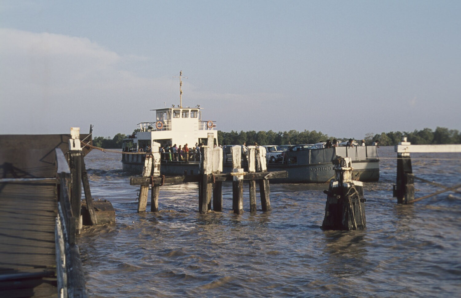 De kleine veerboot op de surinamerivier te Paramaribo
