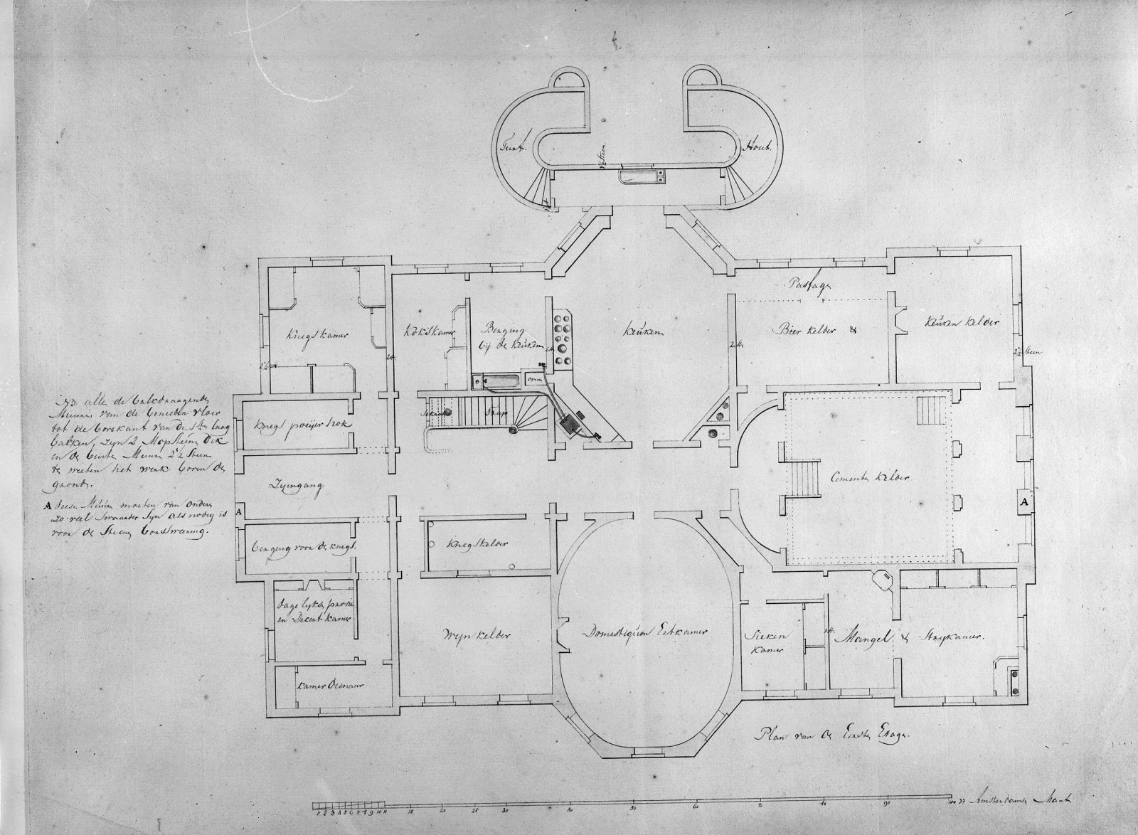 Interieur, Huize Elsenburg, onderhuis tekening - rep...