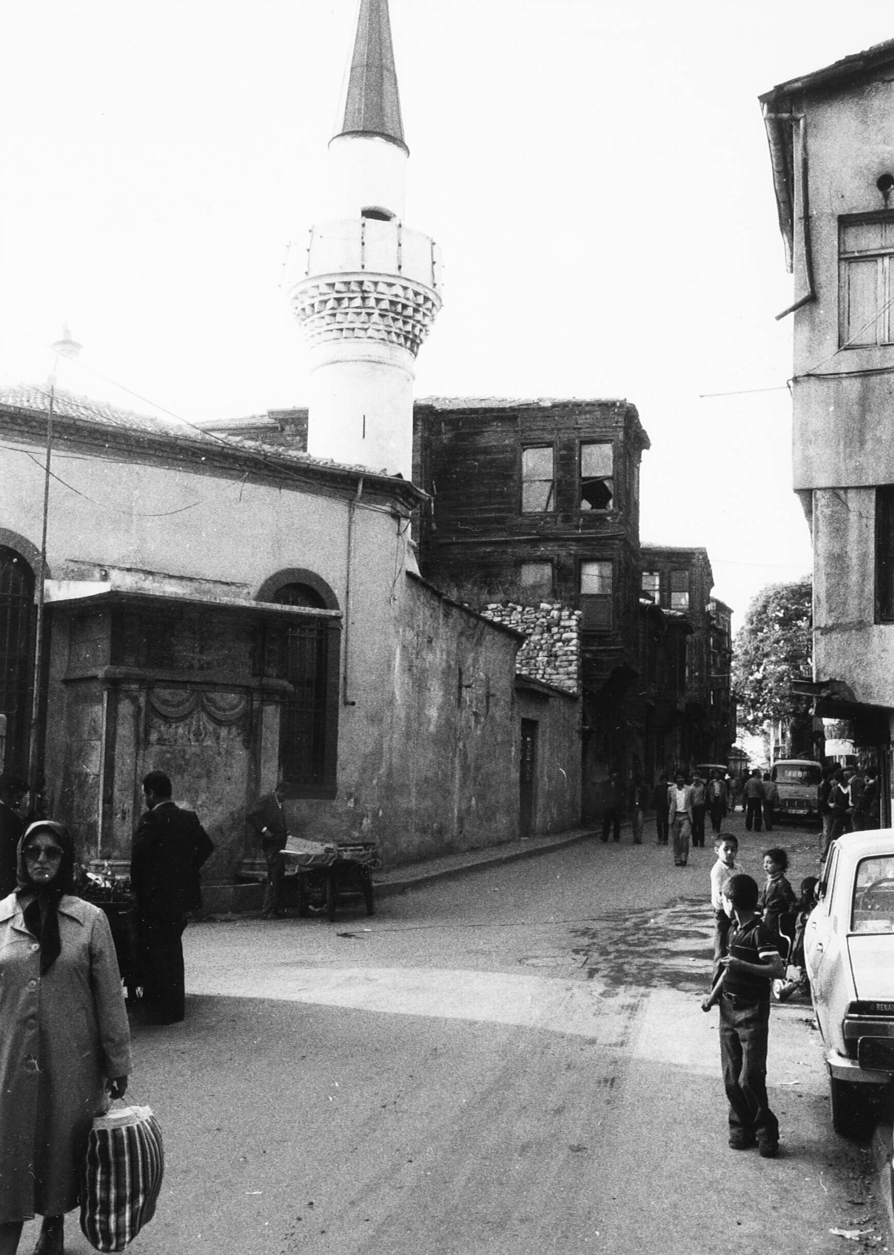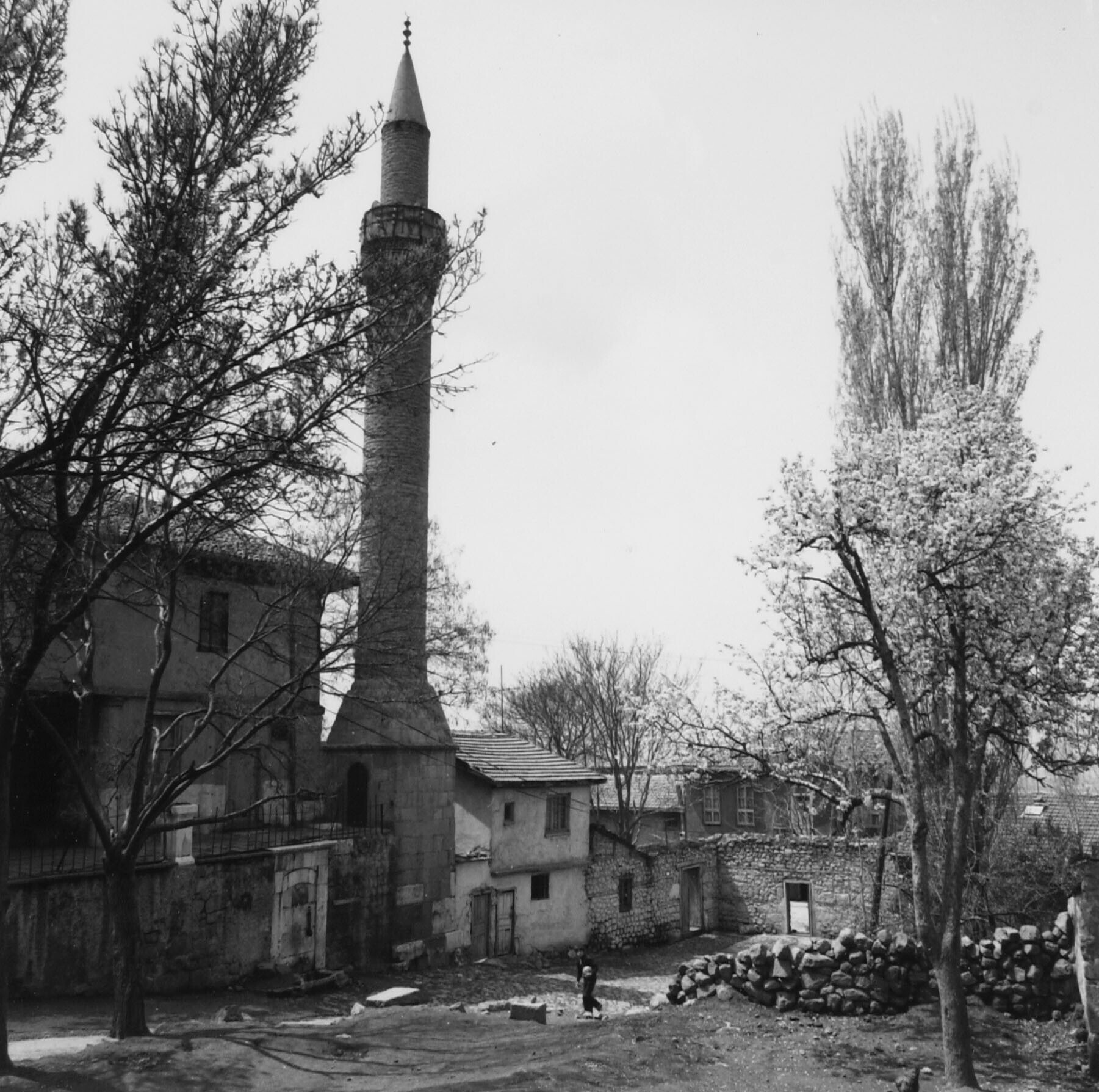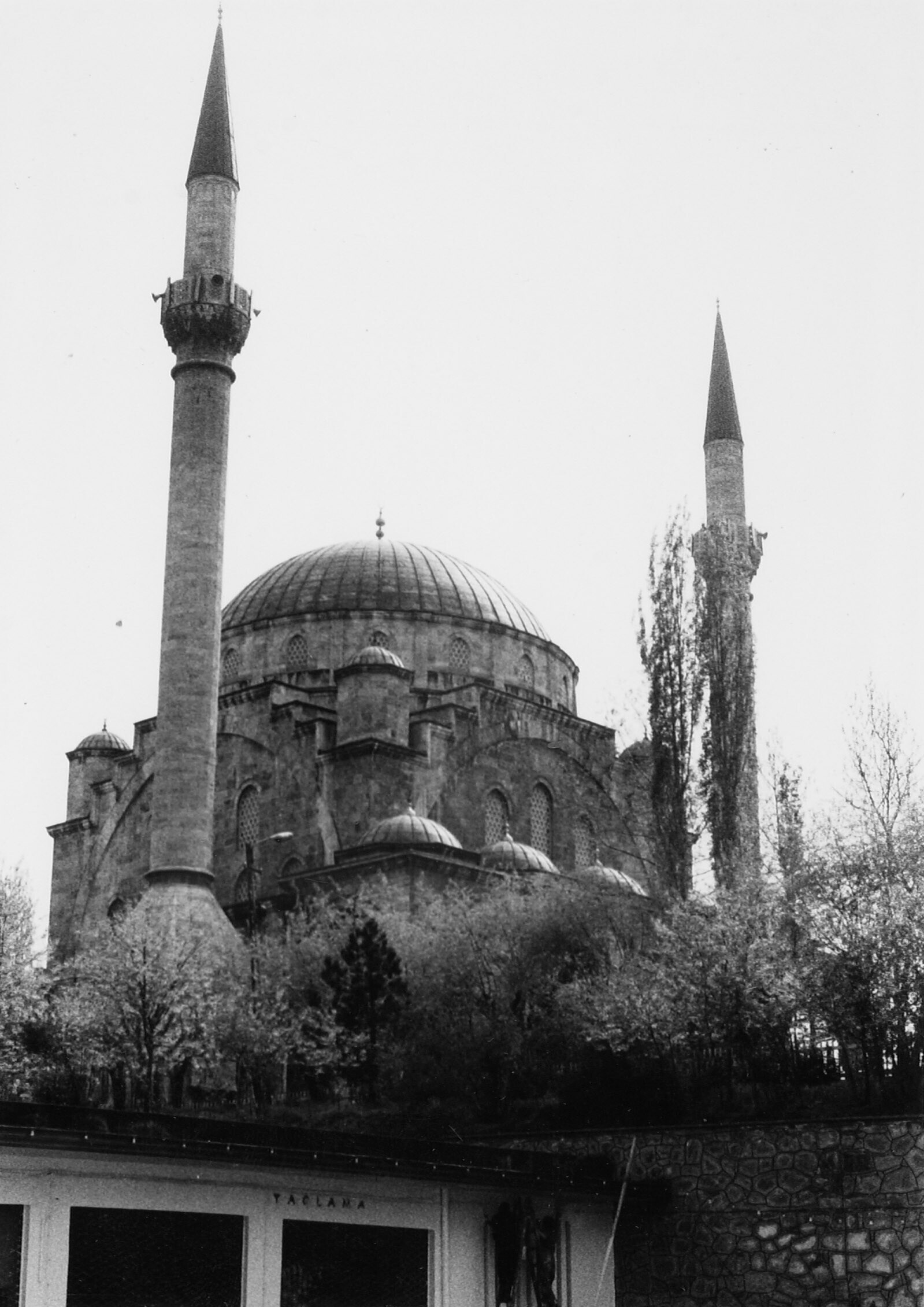 Uitzicht op de Kursunlu moskee, op de voorgrond de m...