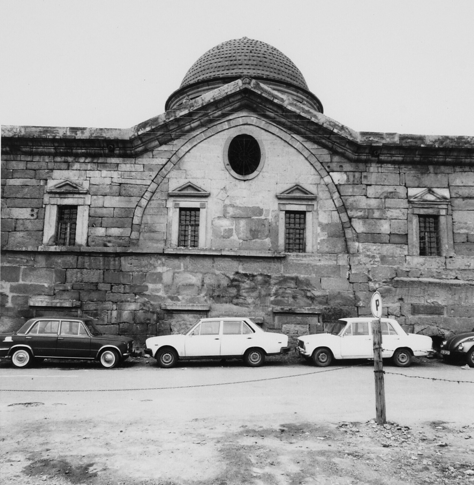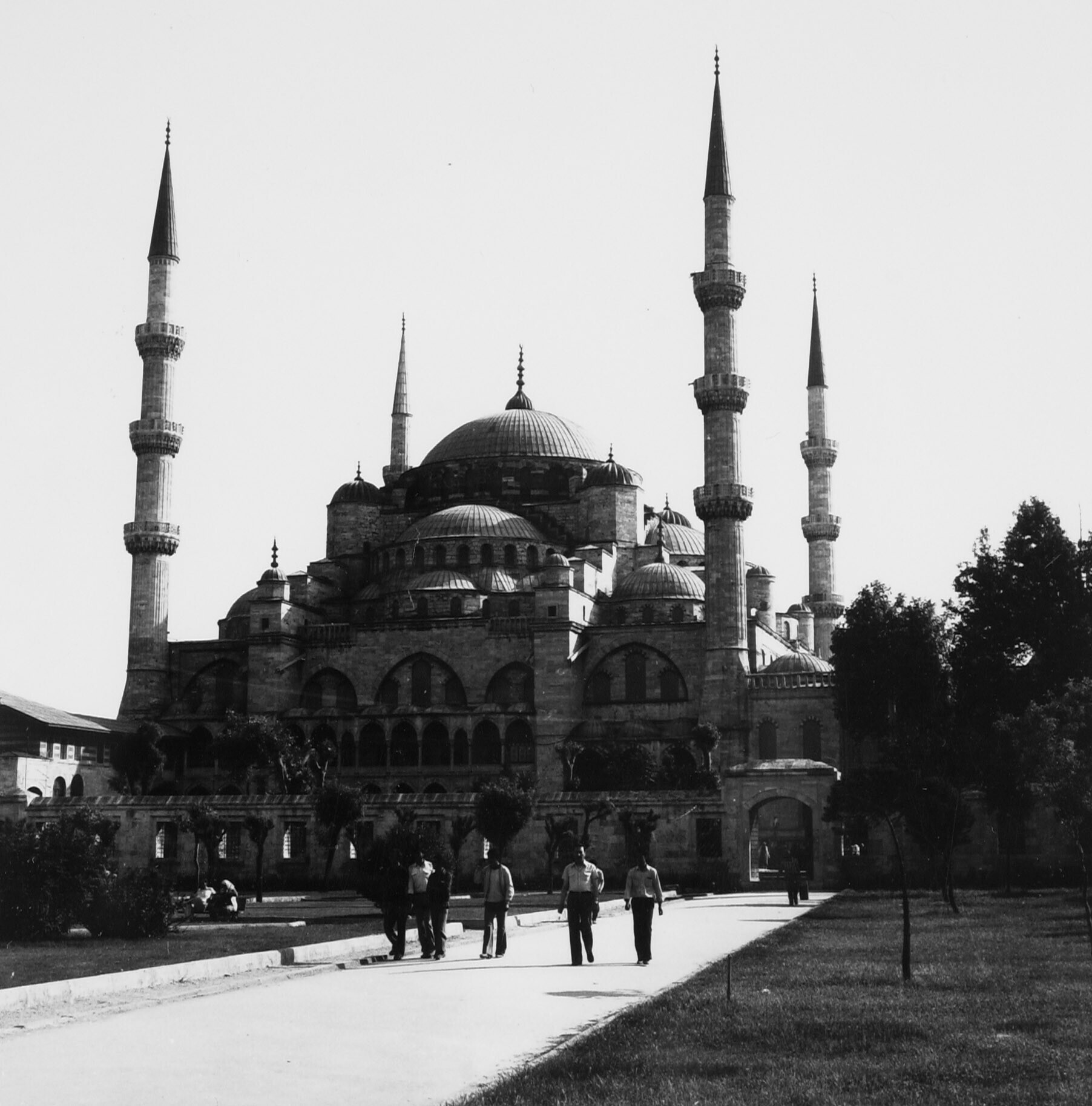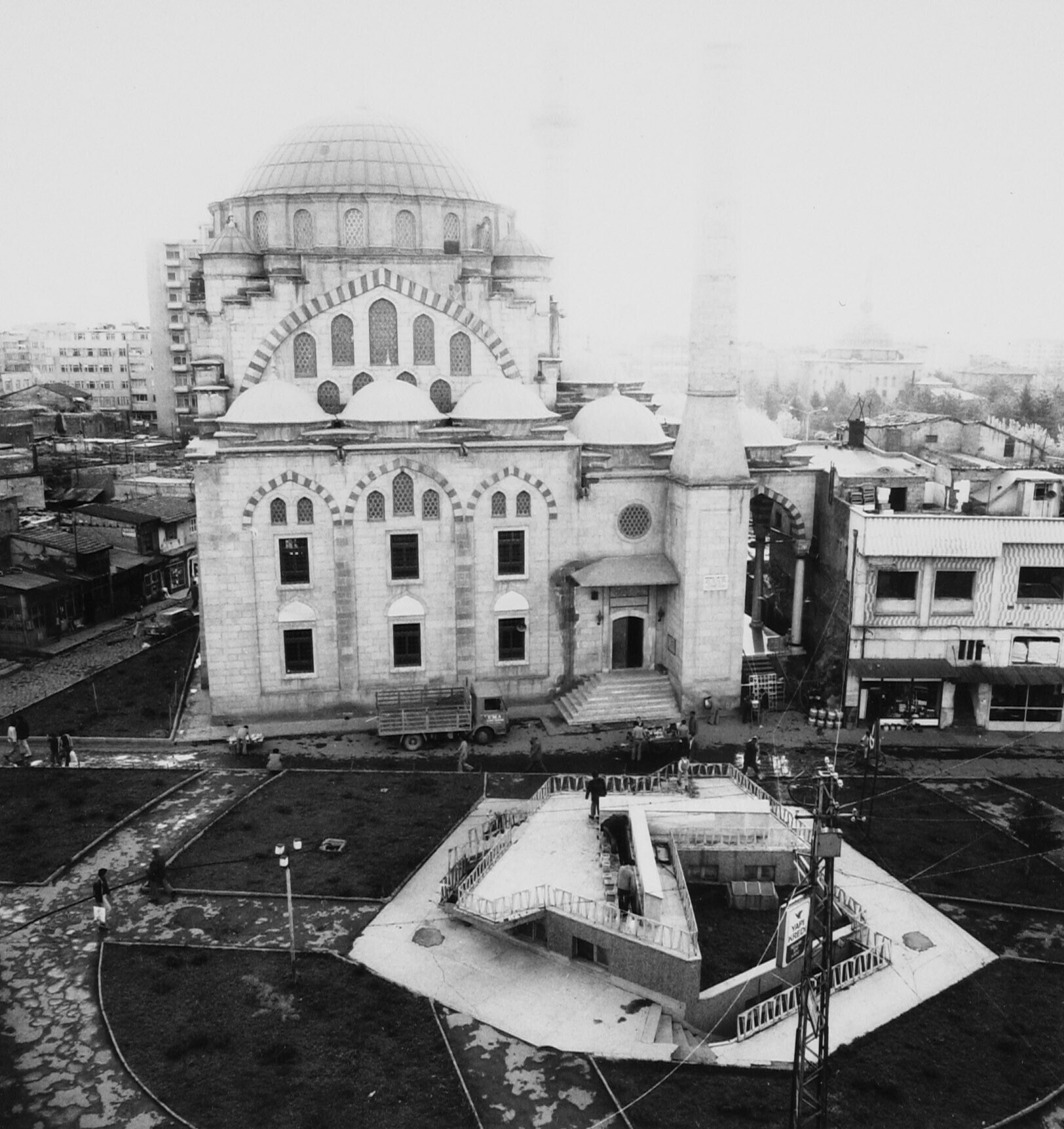 Uitzicht op de Kursunlu moskee, op de voorgrond de m...