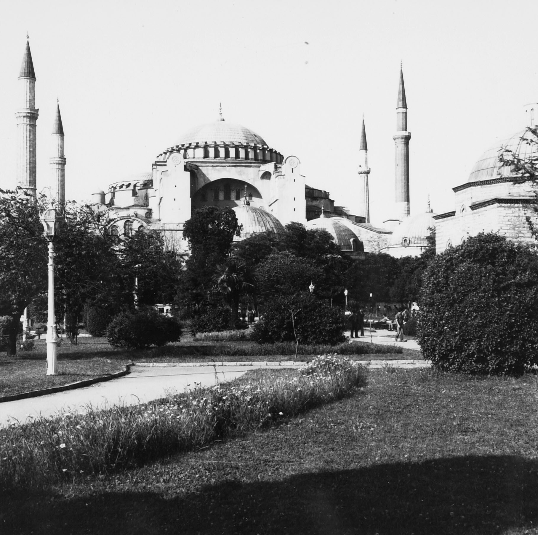 De Aya Sofya moskee, gezien vanaf de Sultan Ahmet mo...