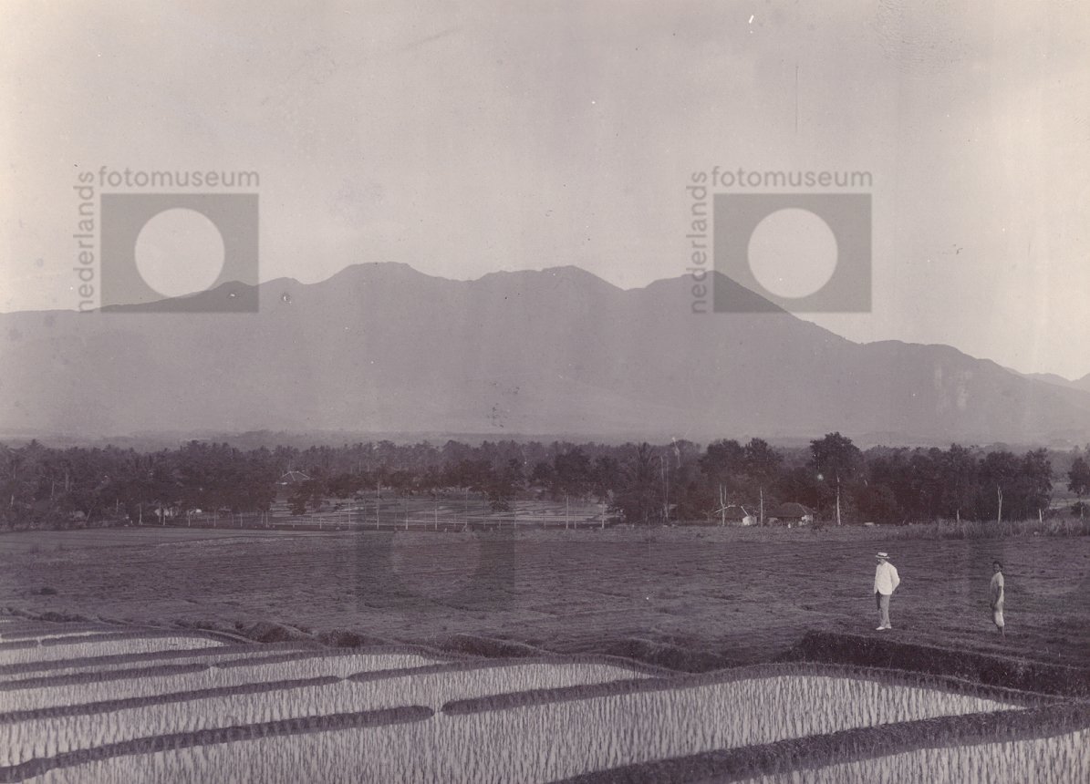 Sawa vlakte met op de achtergrond de vulkaan Guntur,...