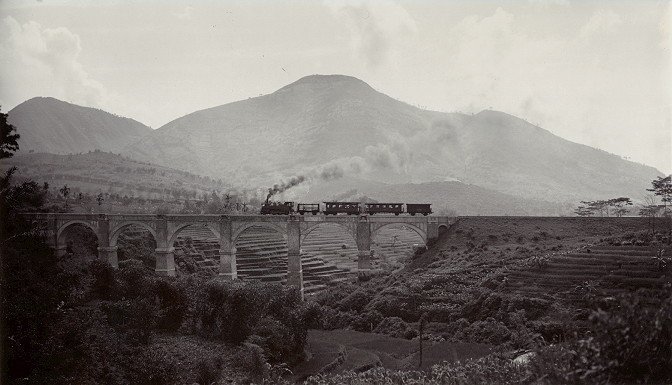 Betonnen spoorbrug over deTjikoeda in de lijn Rantja...