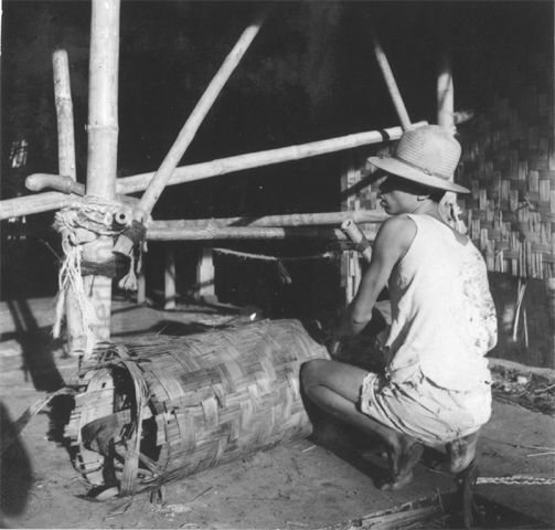 Bouwvakker werkt aan een traditioneel Javaans gebouw...