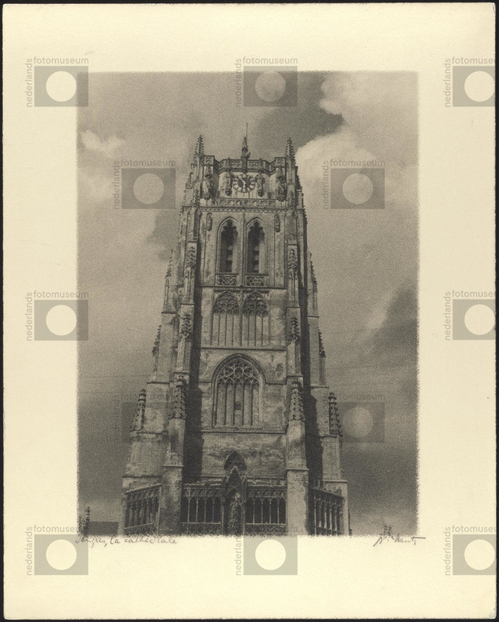 de kathedraal van Tongeren; toren met wolken