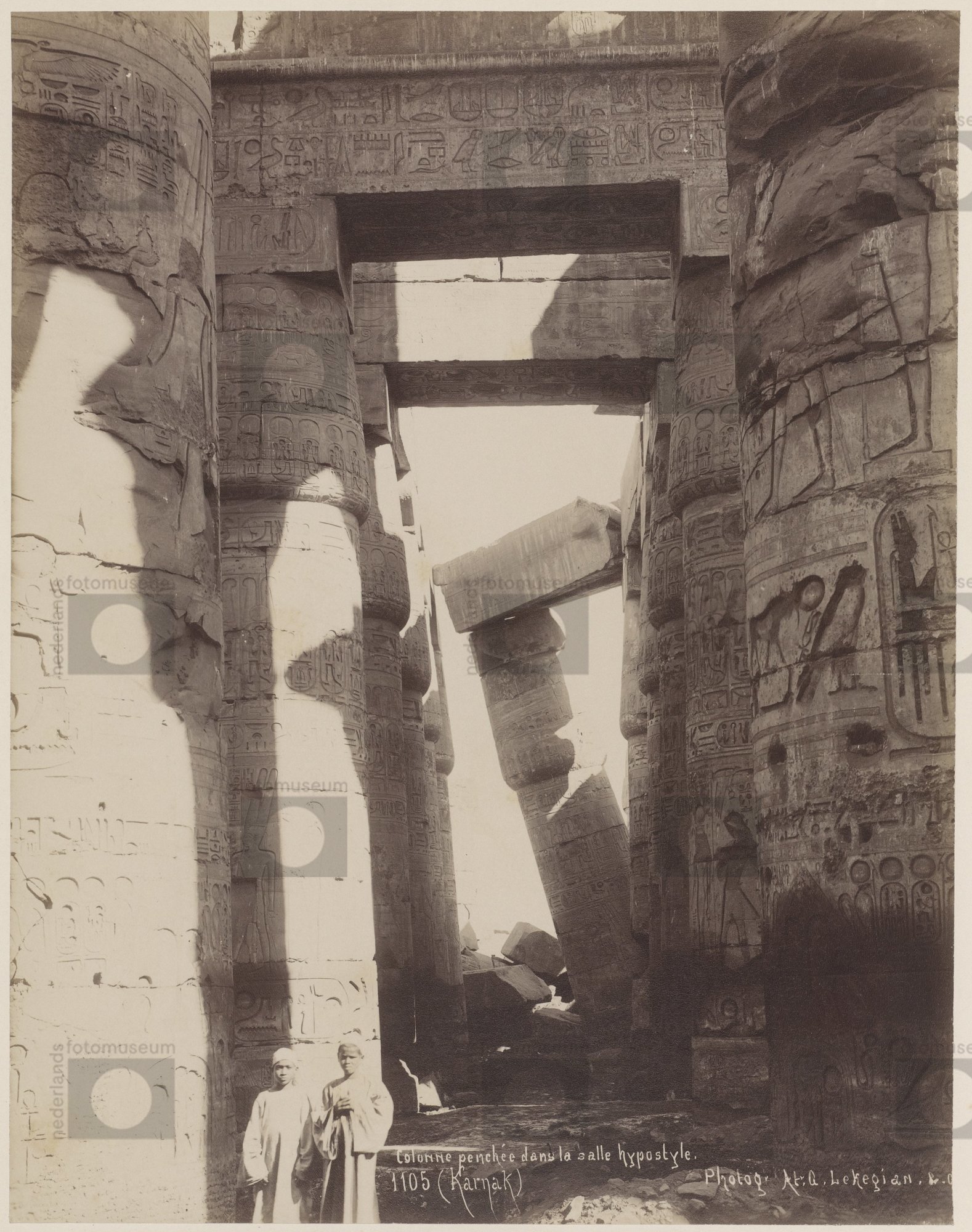 Scheef gezakte zuil van de hypostyle zaal van de Amo...