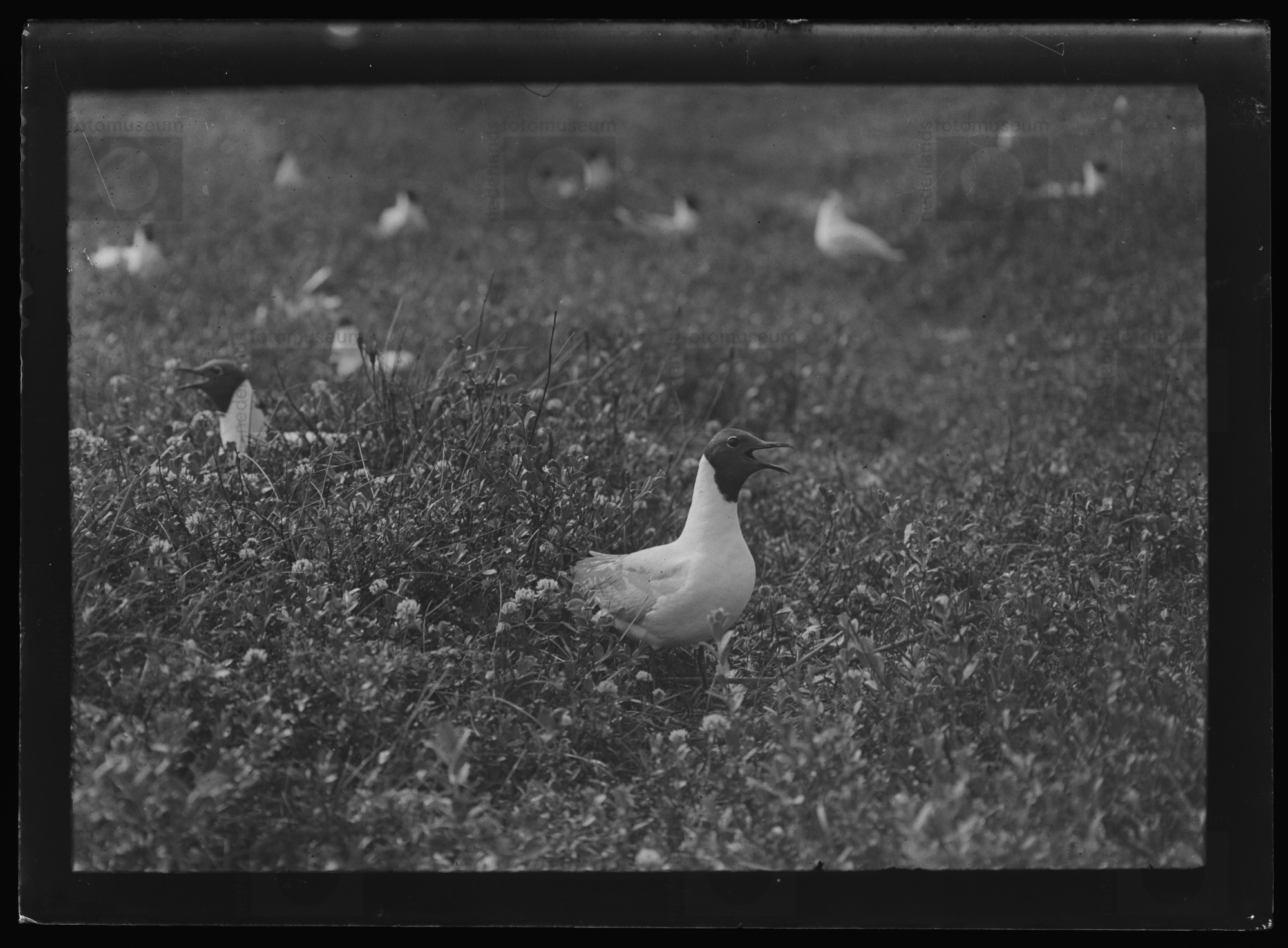 Broedende Kokmeeuw in het Engels gras (z.j)