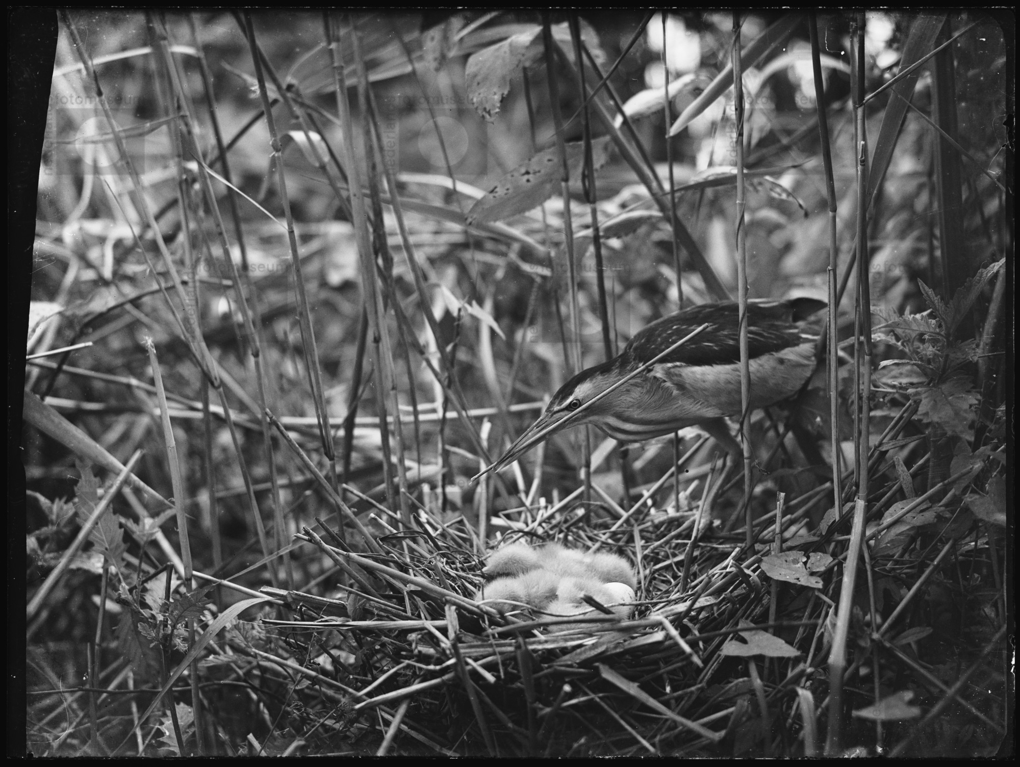 Blauwe reiger op nest, Sloten (1931)