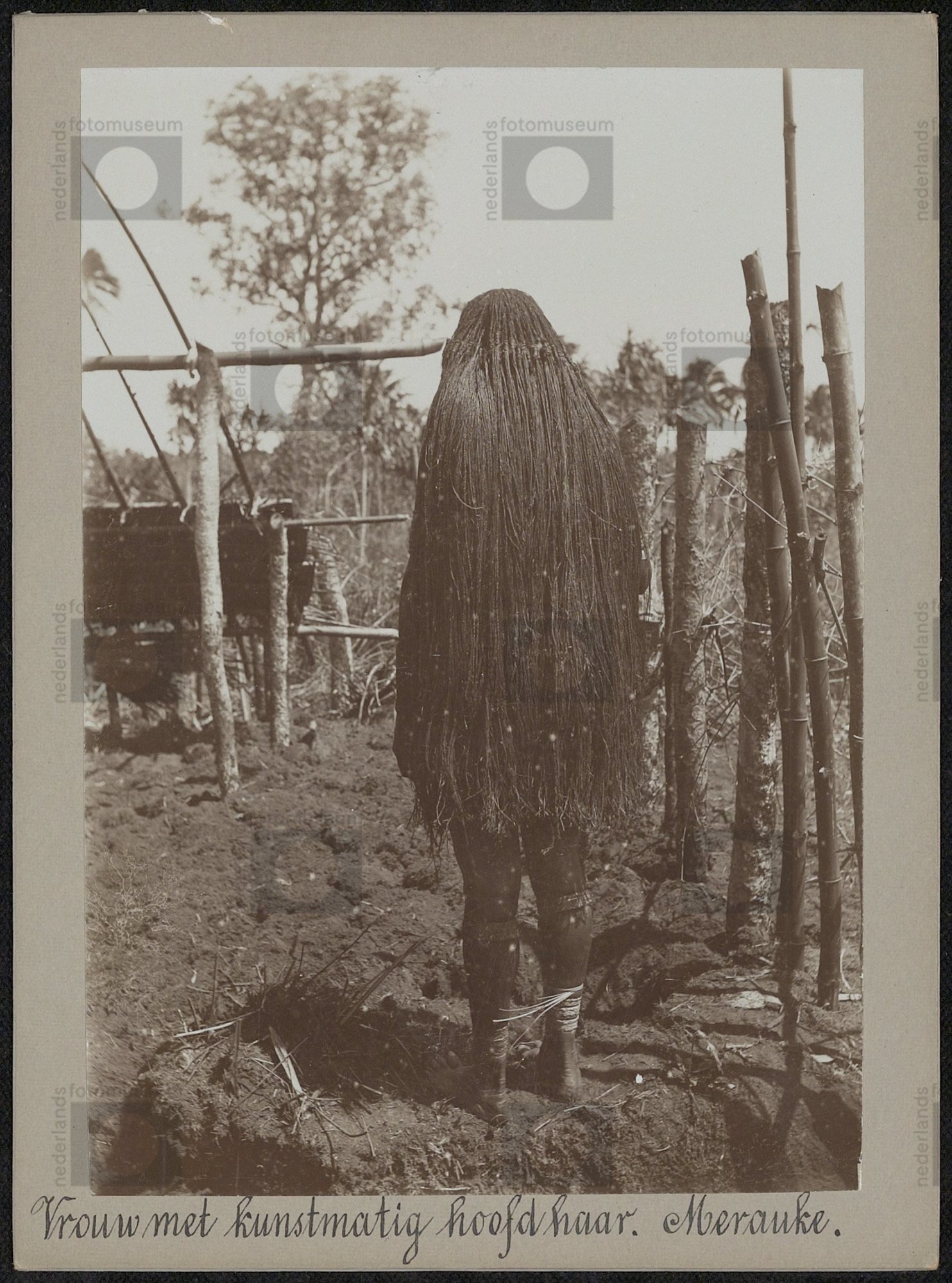 Kaja-Kaja vrouw met kunstmatig haar, Merauke, Nieuw-...