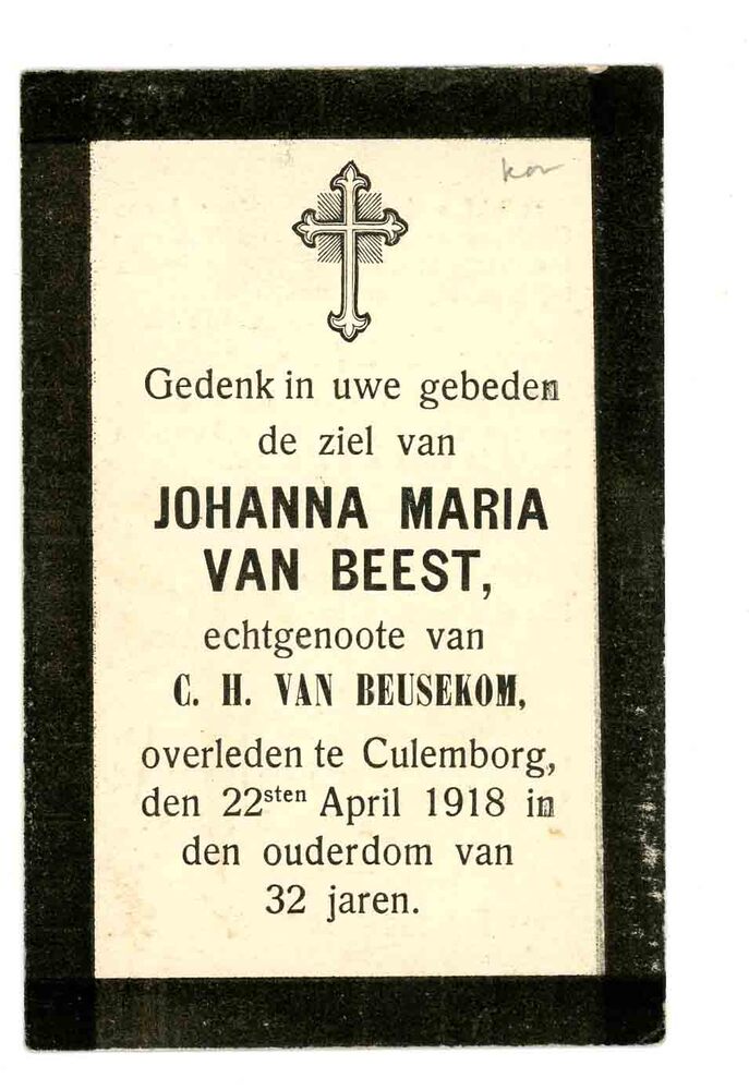 bidprent voor Johanna Maria van Beest. Geboren circa...