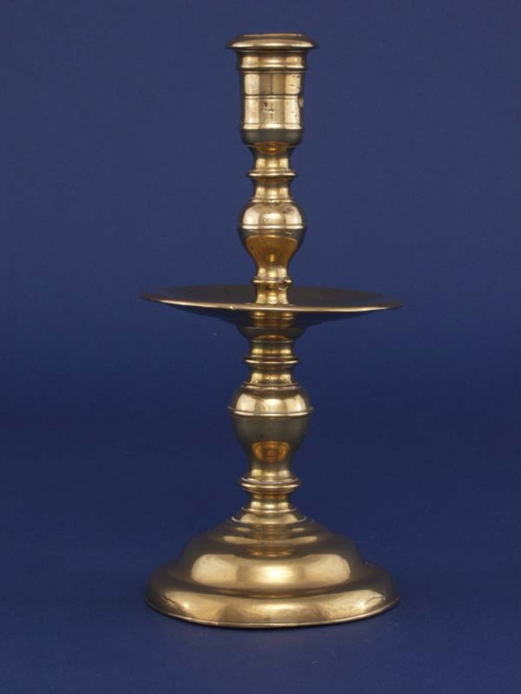 schijf- of kraagkandelaar van messing uit de 17e of ...