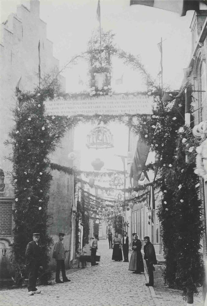 Foto, voorstellende kroningsfeest koningin Wilhelmin...