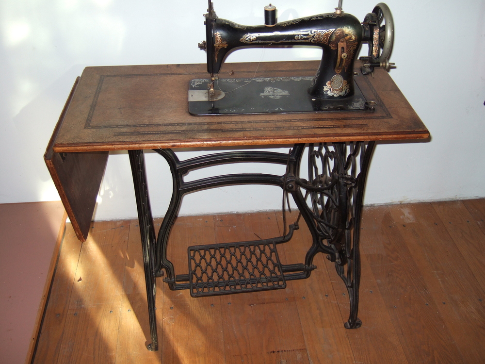 Naaimachine op tafel met zijklep, met trapper.
