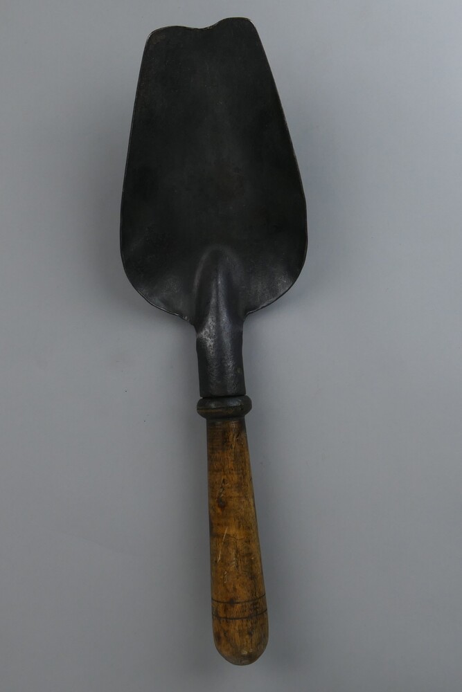 Kolenschep van ijzer met houten steel.
